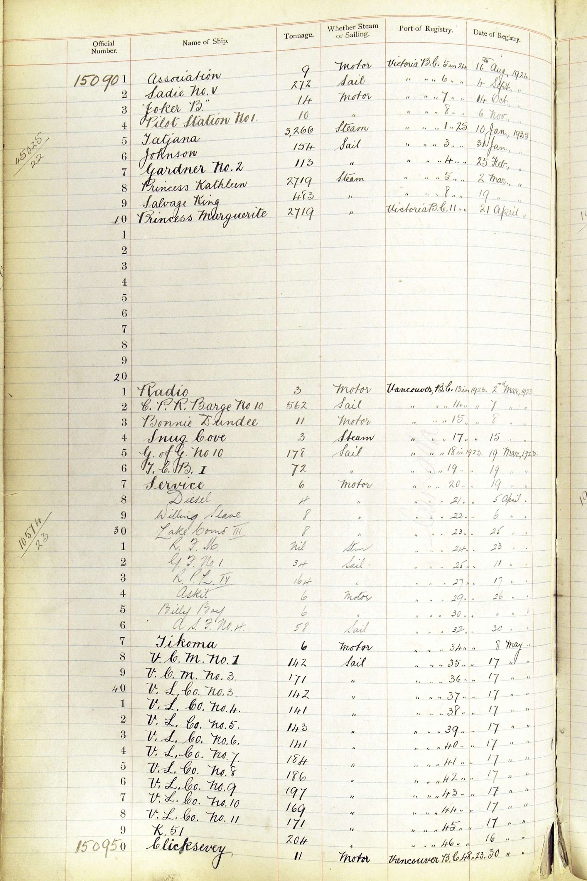 When the system of official numbers began on 16 April 1855, the British Ports of Registry were each allocated batches of official numbers. For official numbers up to 22200 you can see this allocation as a pencil note at the top of the page where the allocation began. A summary of the first allocation is shown here: Initial allocation of official numbers