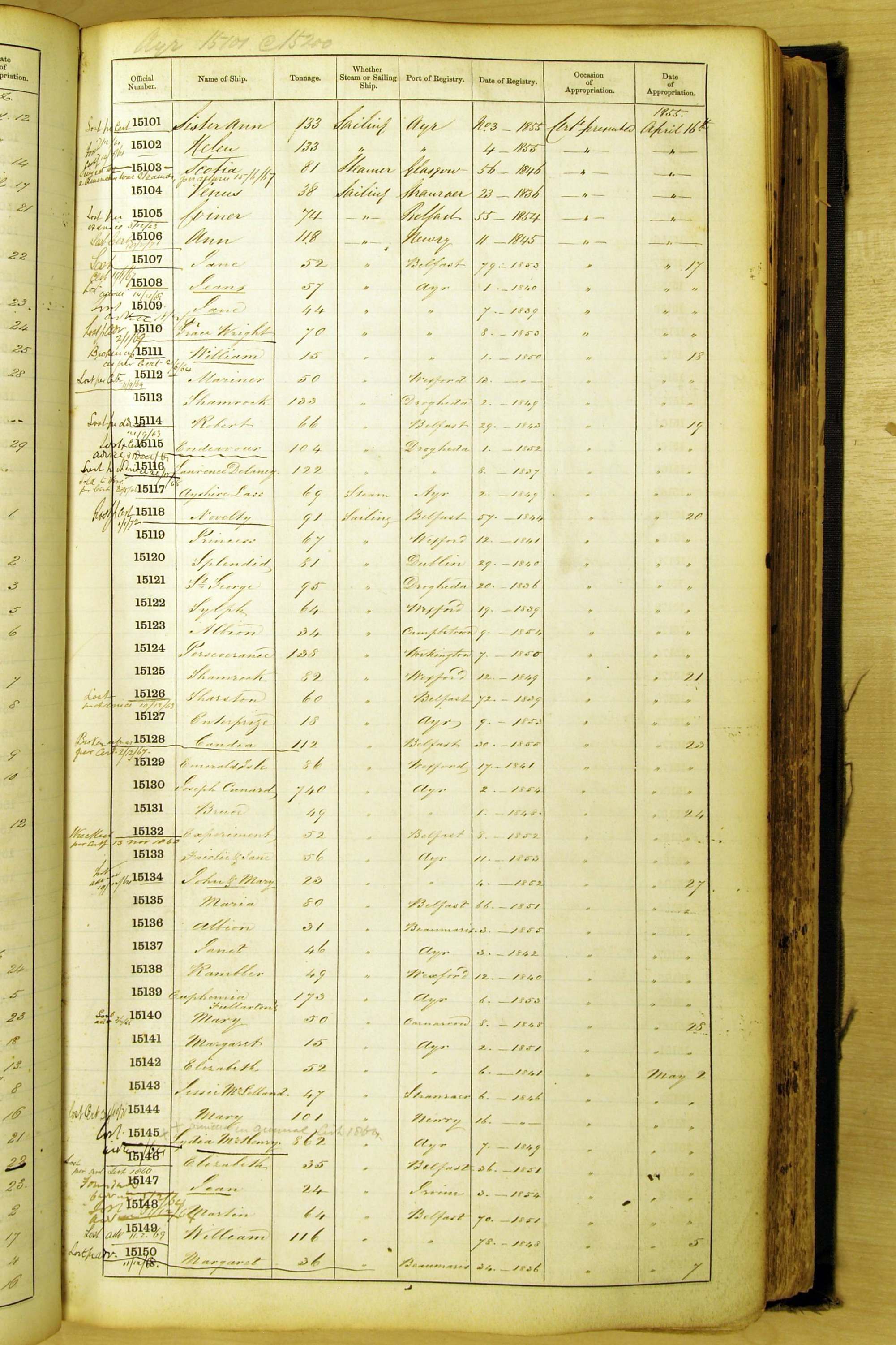 Bear in mind that the ships names in the Appropriation Books are not the definitive name or spelling of the name, even though these are the central records for the whole system. As you can see, the entries are hand-written and derived from hand-written returns made by the various ports, themselves based on the hand-written shipping registers, based on what the port officials thought the person registering the ship was saying or had hand-written down.