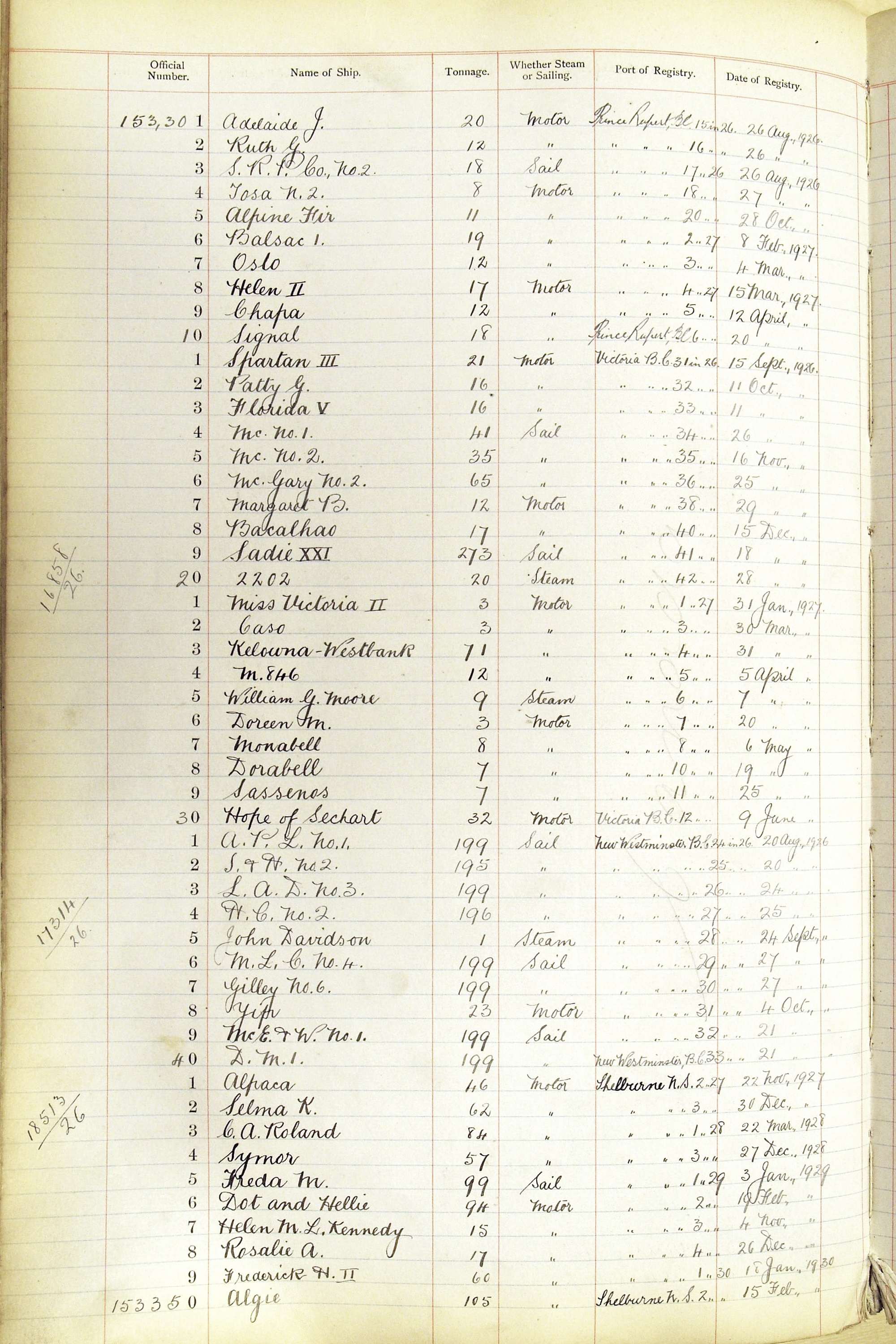When the system of official numbers began on 16 April 1855, the British Ports of Registry were each allocated batches of official numbers. For official numbers up to 22200 you can see this allocation as a pencil note at the top of the page where the allocation began. A summary of the first allocation is shown here: Initial allocation of official numbers