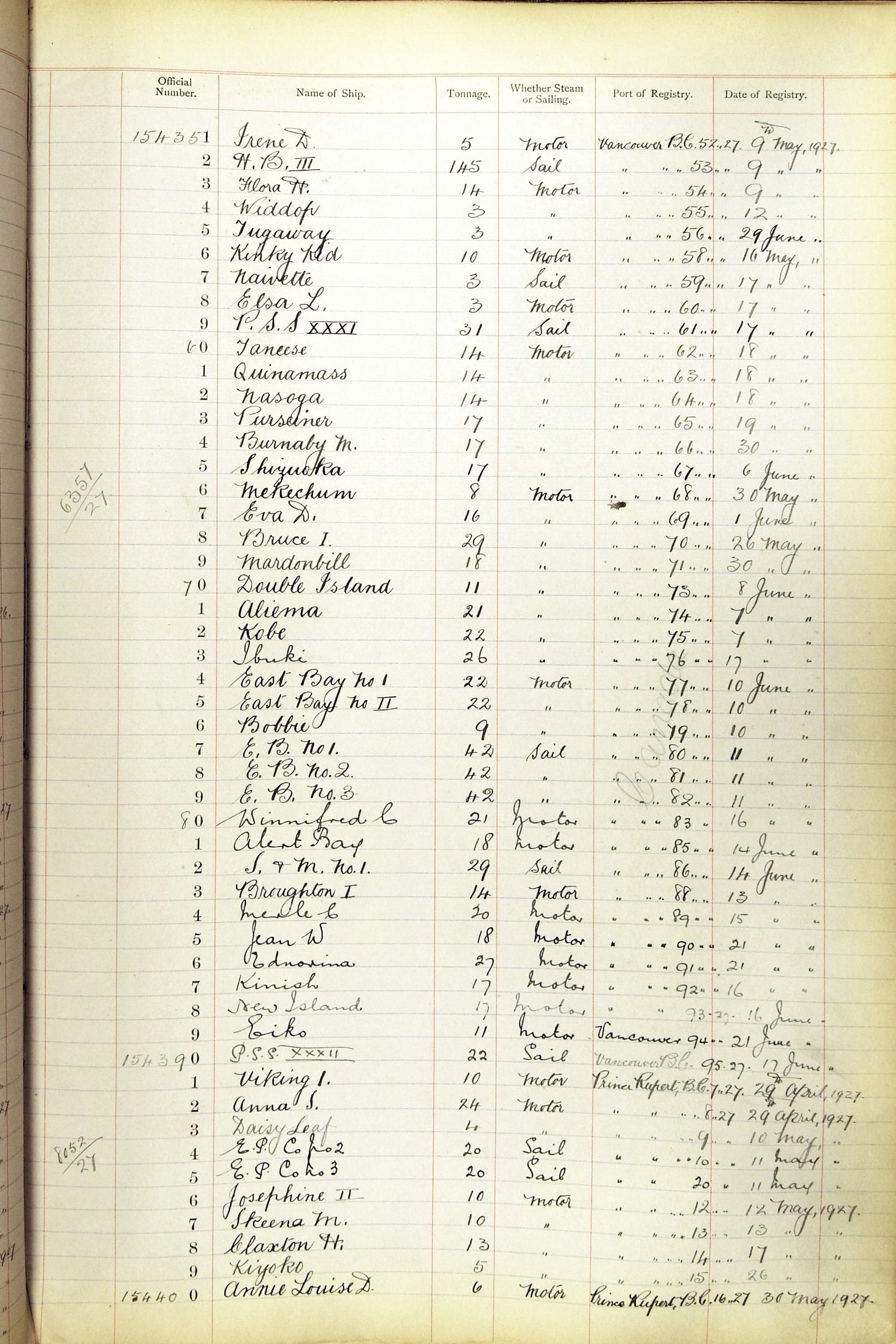 When the system of official numbers began on 16 April 1855, the British Ports of Registry were each allocated batches of official numbers. For official numbers up to 22200 you can see this allocation as a pencil note at the top of the page where the allocation began. A summary of the first allocation is shown here: Initial allocation of official numbers