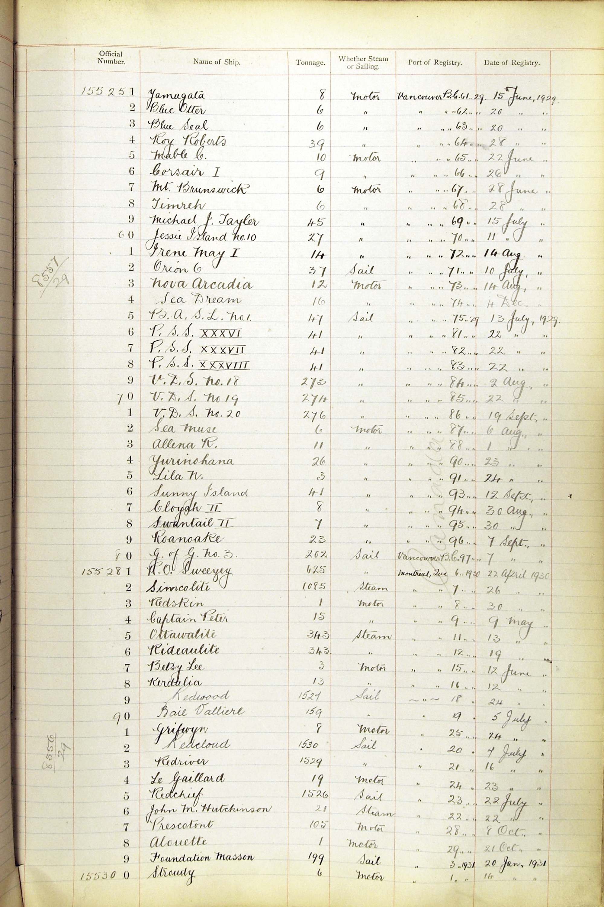 The ship names recorded are those that the ships carried at the time that their official numbers were allocated - changes are sometimes noted, but the best source for changes of name are the shipping registers for the port, or alternatively the Mercantile Navy List.