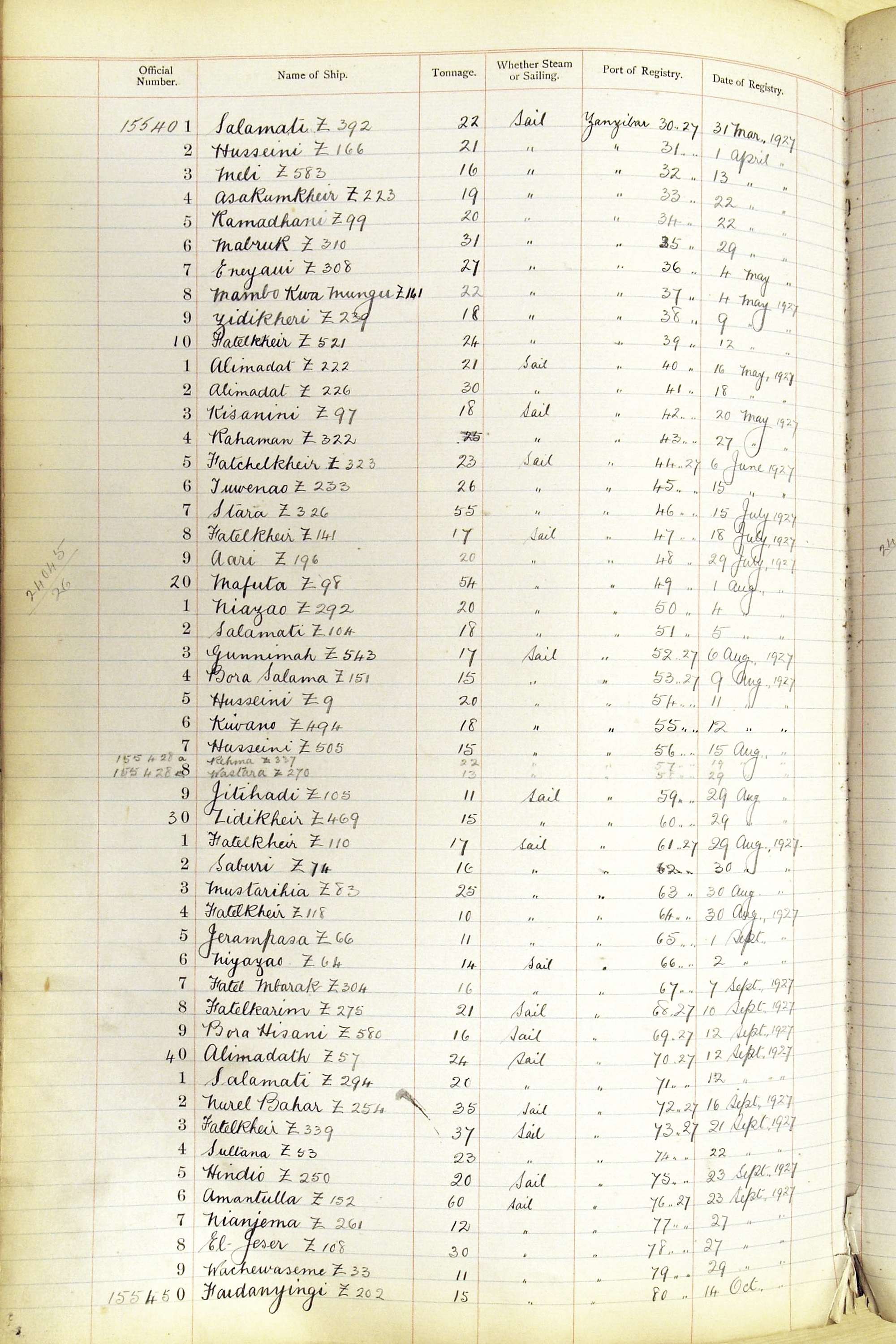 When the system of official numbers began on 16 April 1855, the British Ports of Registry were each allocated batches of official numbers. For official numbers up to 22200 you can see this allocation as a pencil note at the top of the page where the allocation began. A summary of the first allocation is shown here: Initial allocation of official numbers