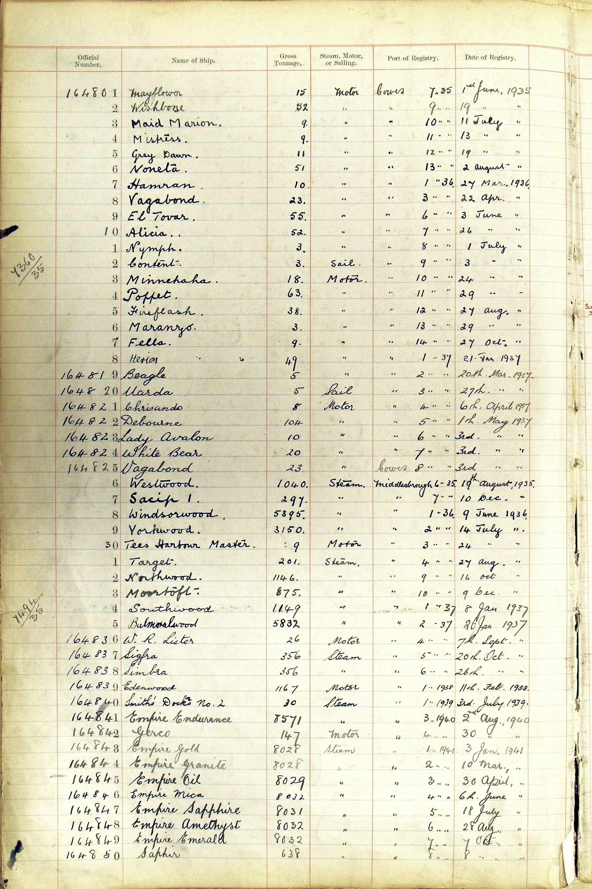 The ship names recorded are those that the ships carried at the time that their official numbers were allocated - changes are sometimes noted, but the best source for changes of name are the shipping registers for the port, or alternatively the Mercantile Navy List.