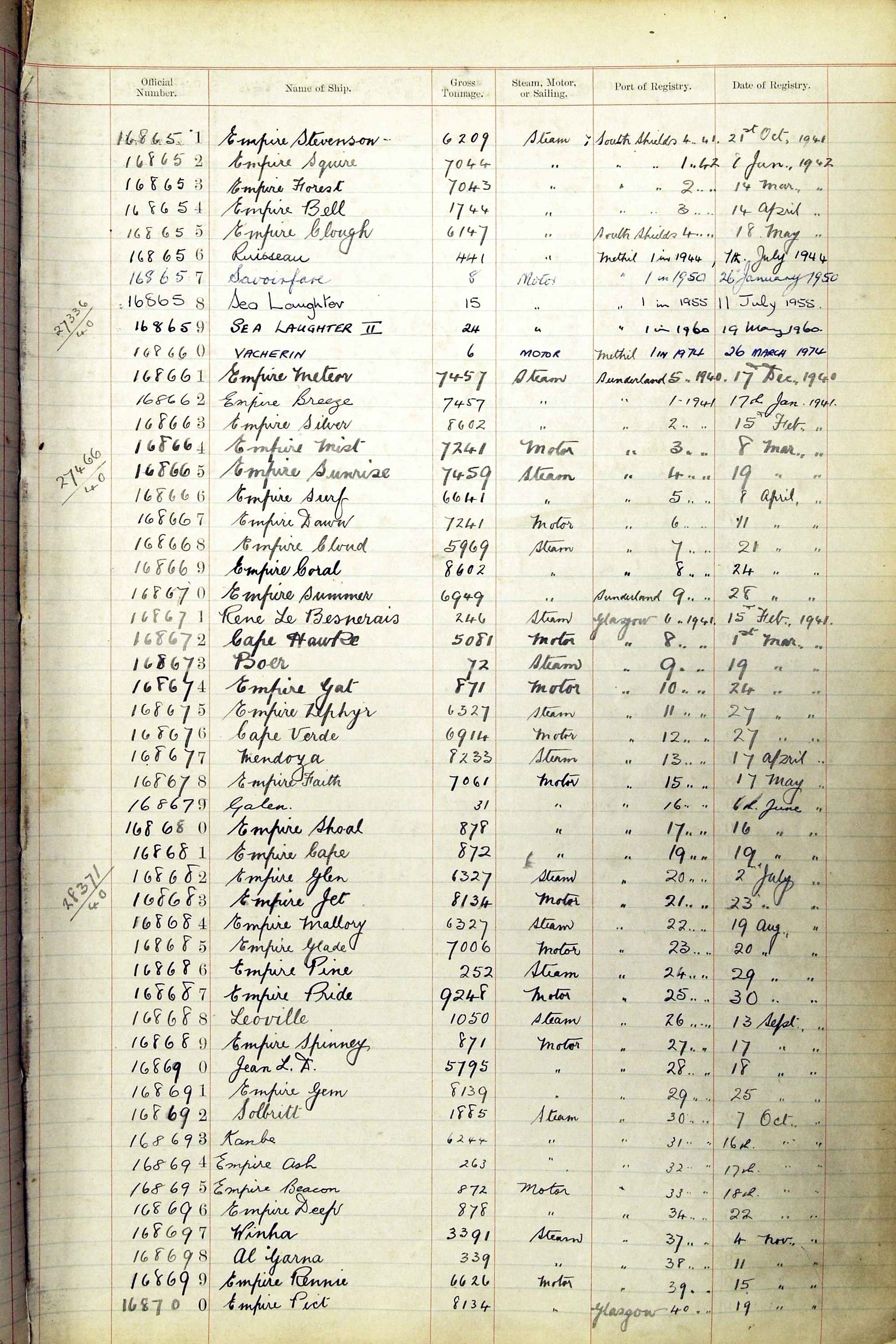 The ship names recorded are those that the ships carried at the time that their official numbers were allocated - changes are sometimes noted, but the best source for changes of name are the shipping registers for the port, or alternatively the Mercantile Navy List.