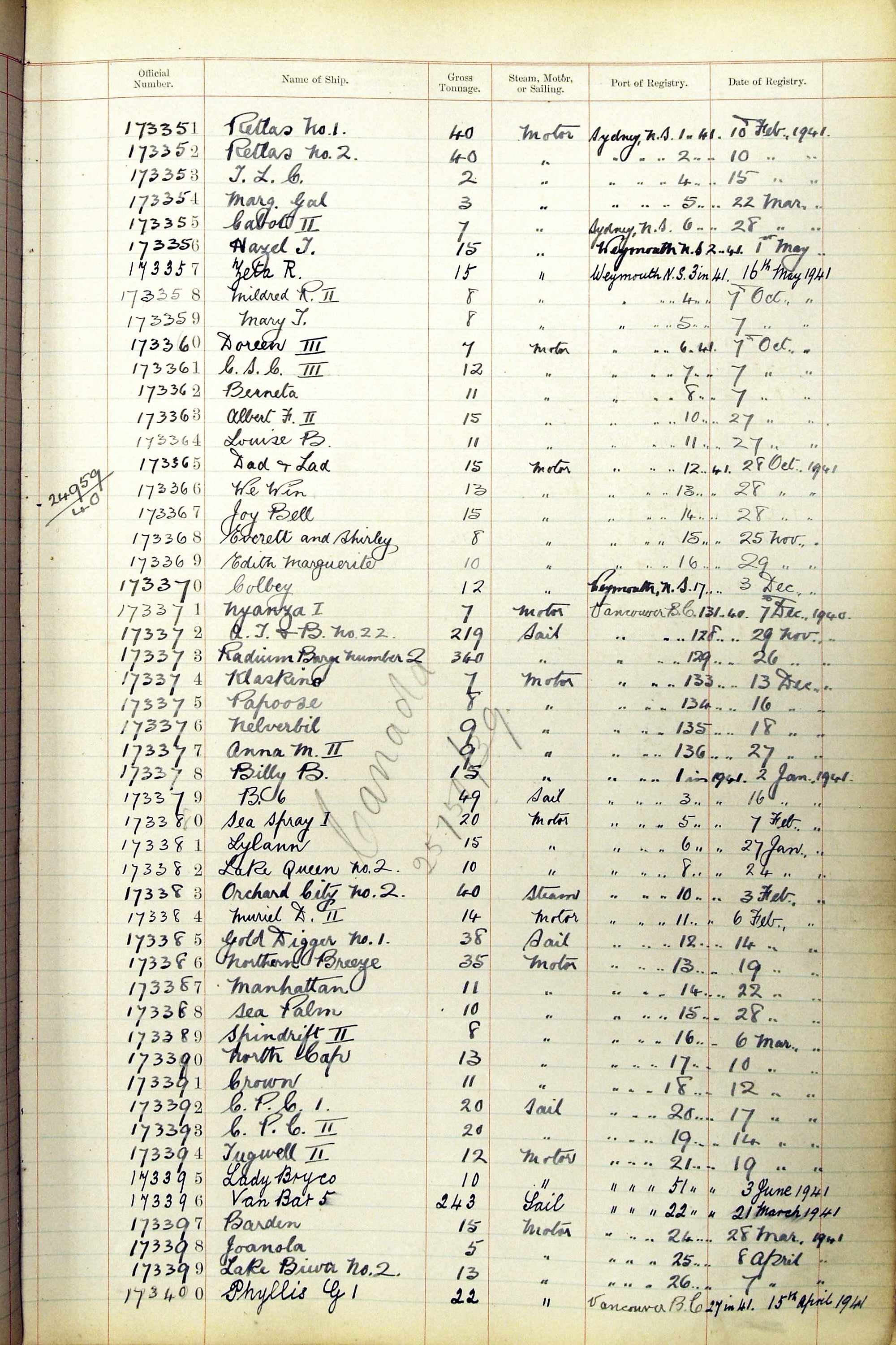 The ship names recorded are those that the ships carried at the time that their official numbers were allocated - changes are sometimes noted, but the best source for changes of name are the shipping registers for the port, or alternatively the Mercantile Navy List.