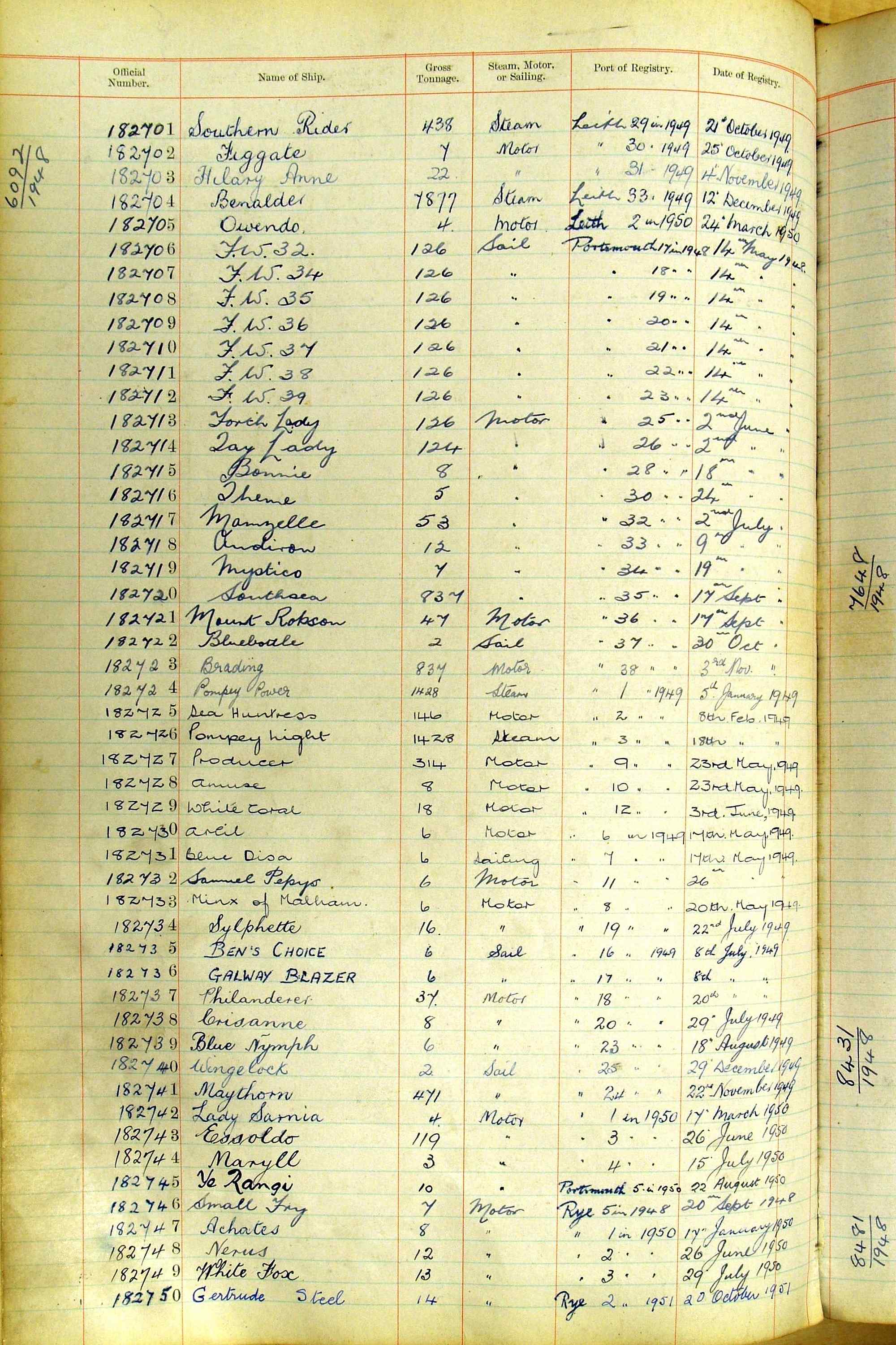 When the system of official numbers began on 16 April 1855, the British Ports of Registry were each allocated batches of official numbers. For official numbers up to 22200 you can see this allocation as a pencil note at the top of the page where the allocation began. A summary of the first allocation is shown here: Initial allocation of official numbers
