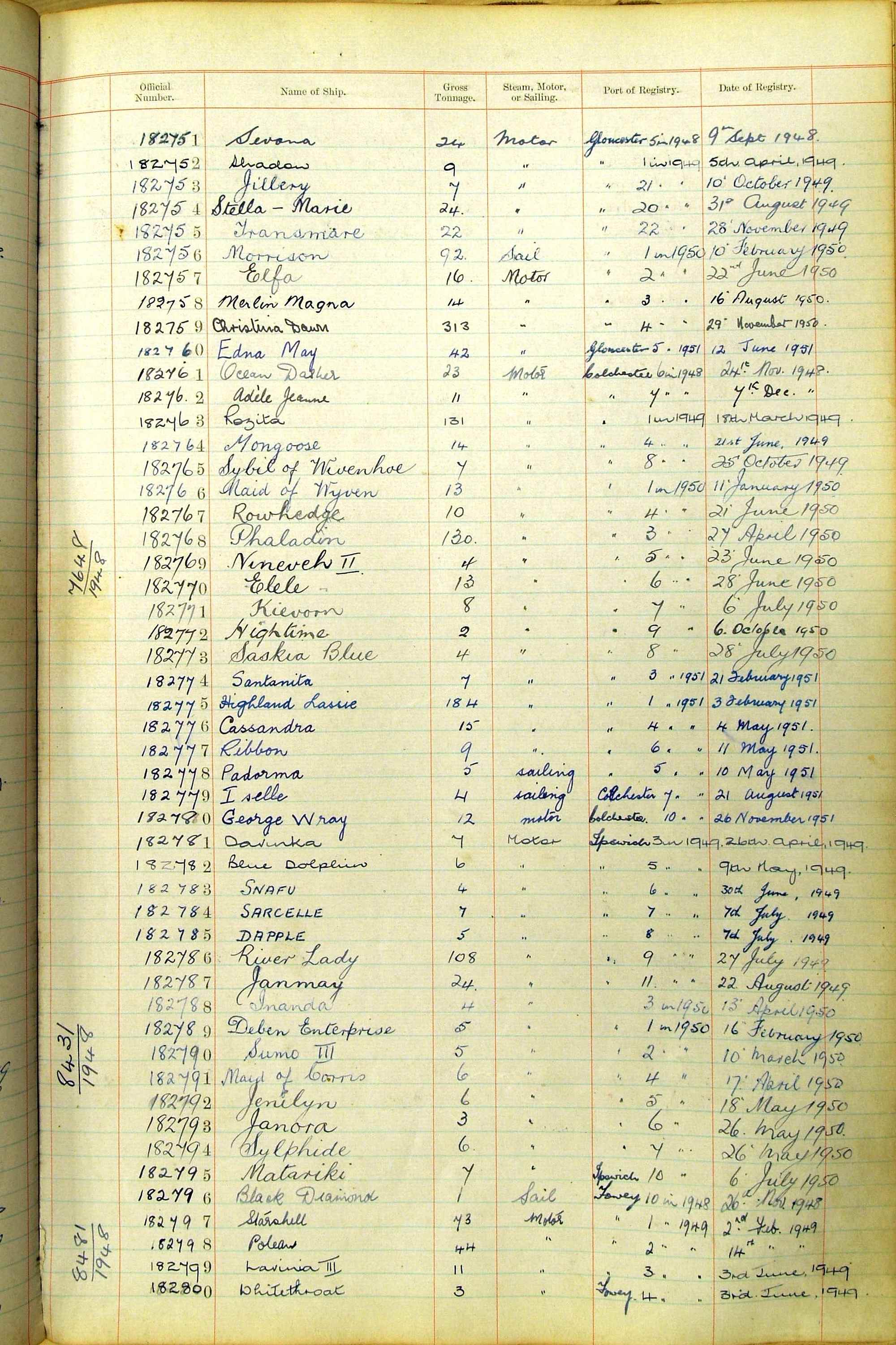 When the system of official numbers began on 16 April 1855, the British Ports of Registry were each allocated batches of official numbers. For official numbers up to 22200 you can see this allocation as a pencil note at the top of the page where the allocation began. A summary of the first allocation is shown here: Initial allocation of official numbers