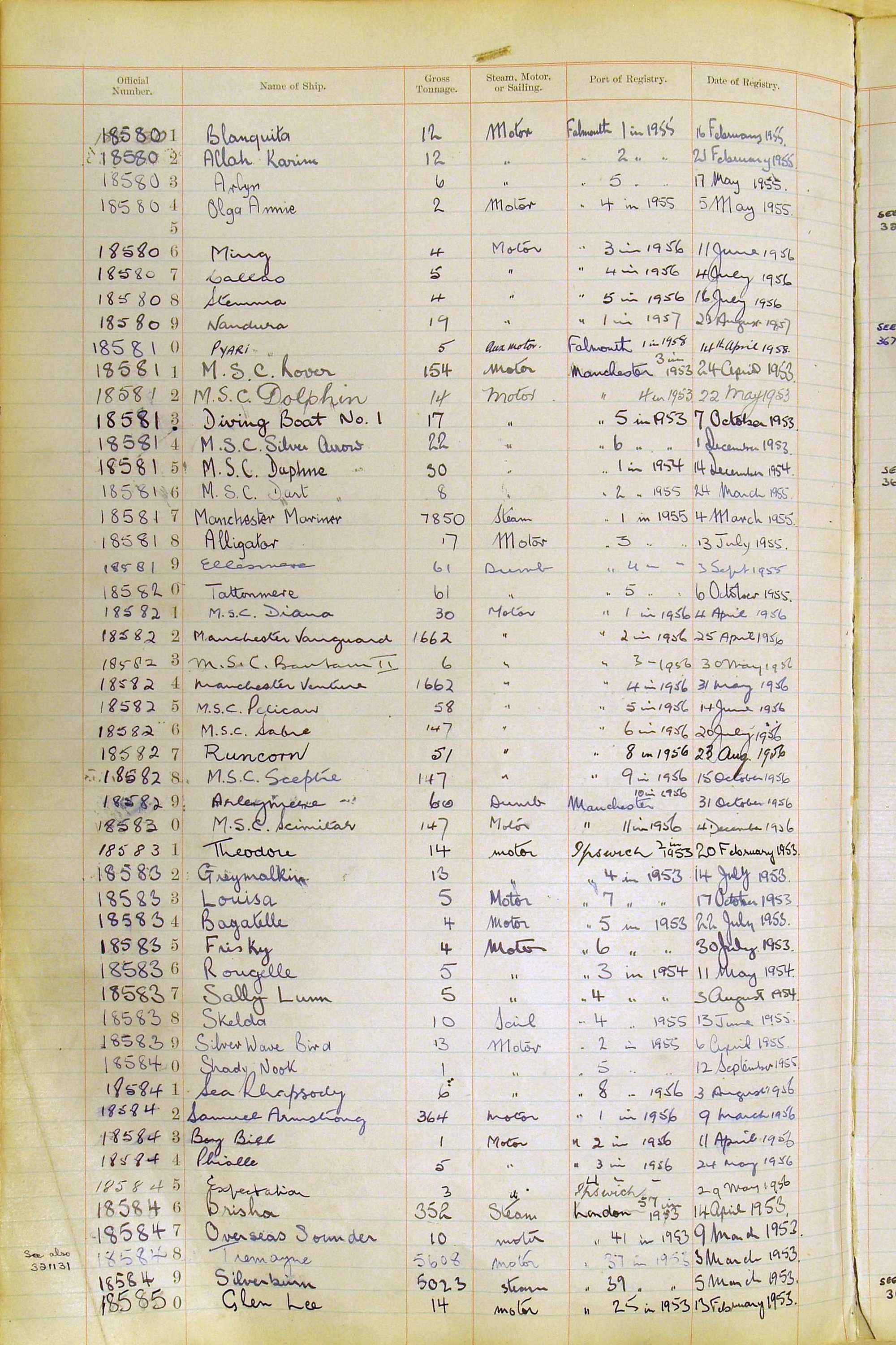 When the system of official numbers began on 16 April 1855, the British Ports of Registry were each allocated batches of official numbers. For official numbers up to 22200 you can see this allocation as a pencil note at the top of the page where the allocation began. A summary of the first allocation is shown here: Initial allocation of official numbers