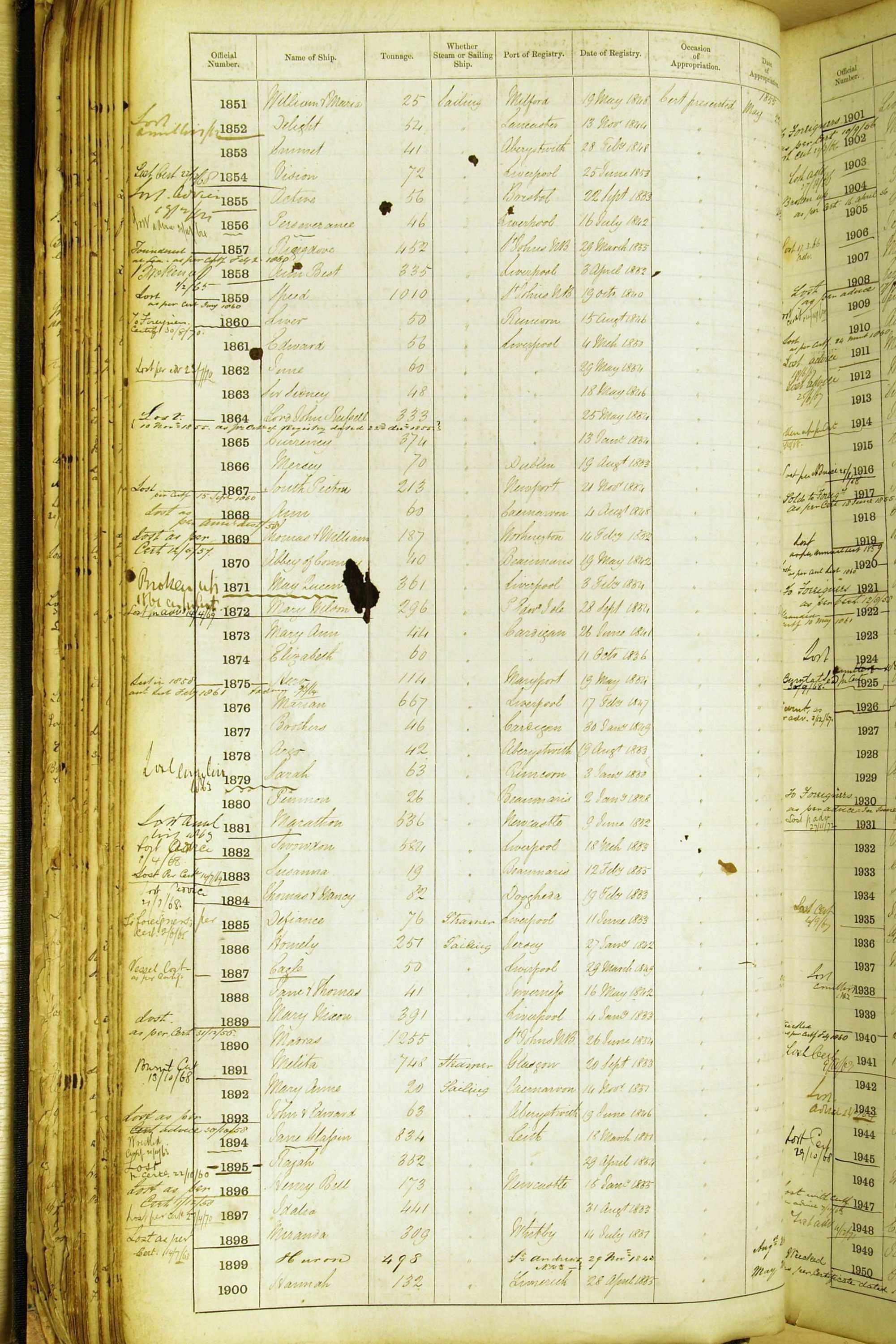 The ship names recorded are those that the ships carried at the time that their official numbers were allocated - changes are sometimes noted, but the best source for changes of name are the shipping registers for the port, or alternatively the Mercantile Navy List.