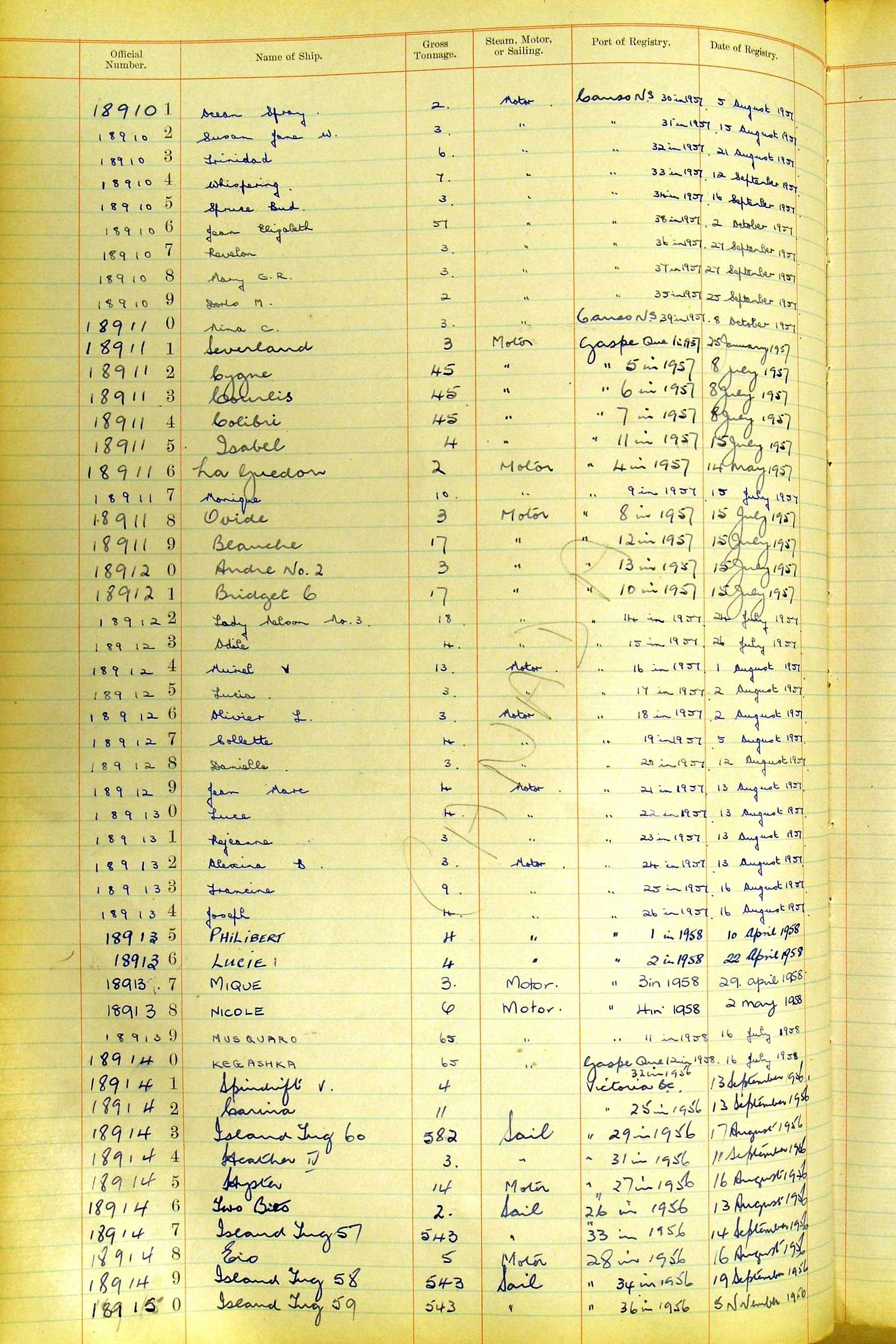 The ship names recorded are those that the ships carried at the time that their official numbers were allocated - changes are sometimes noted, but the best source for changes of name are the shipping registers for the port, or alternatively the Mercantile Navy List.