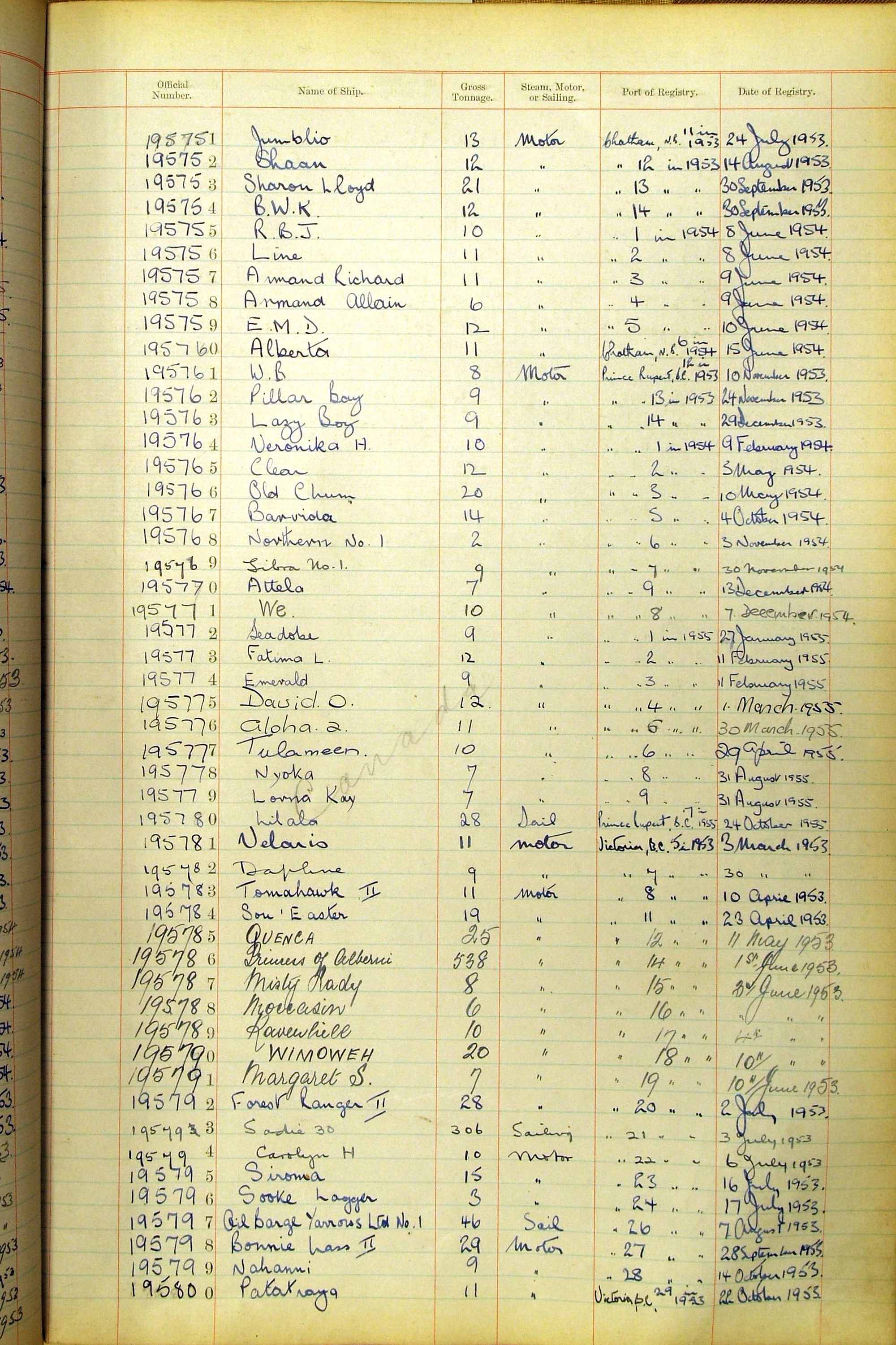 The ship names recorded are those that the ships carried at the time that their official numbers were allocated - changes are sometimes noted, but the best source for changes of name are the shipping registers for the port, or alternatively the Mercantile Navy List.