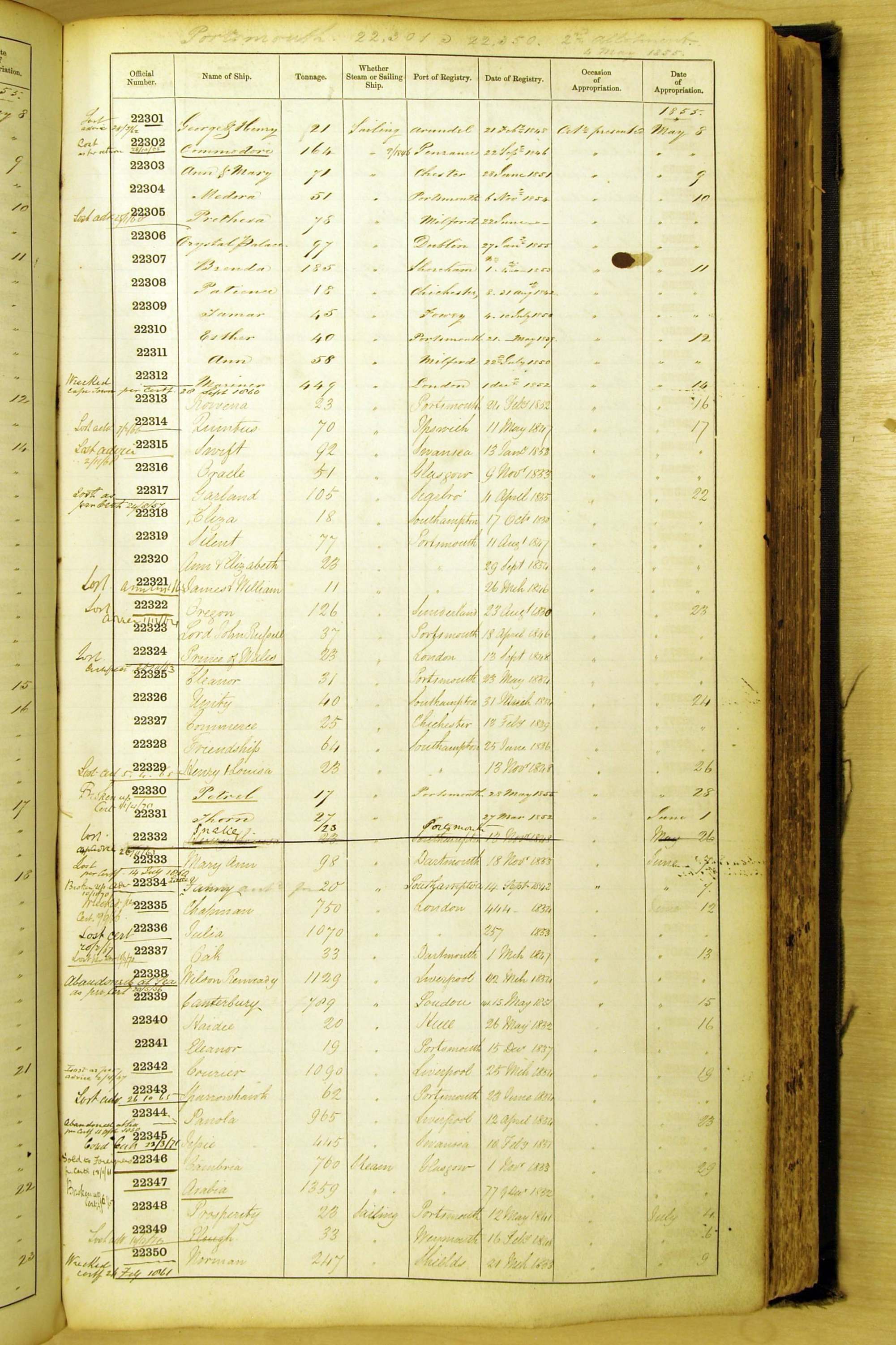 When the system of official numbers began on 16 April 1855, the British Ports of Registry were each allocated batches of official numbers. For official numbers up to 22200 you can see this allocation as a pencil note at the top of the page where the allocation began. A summary of the first allocation is shown here: Initial allocation of official numbers