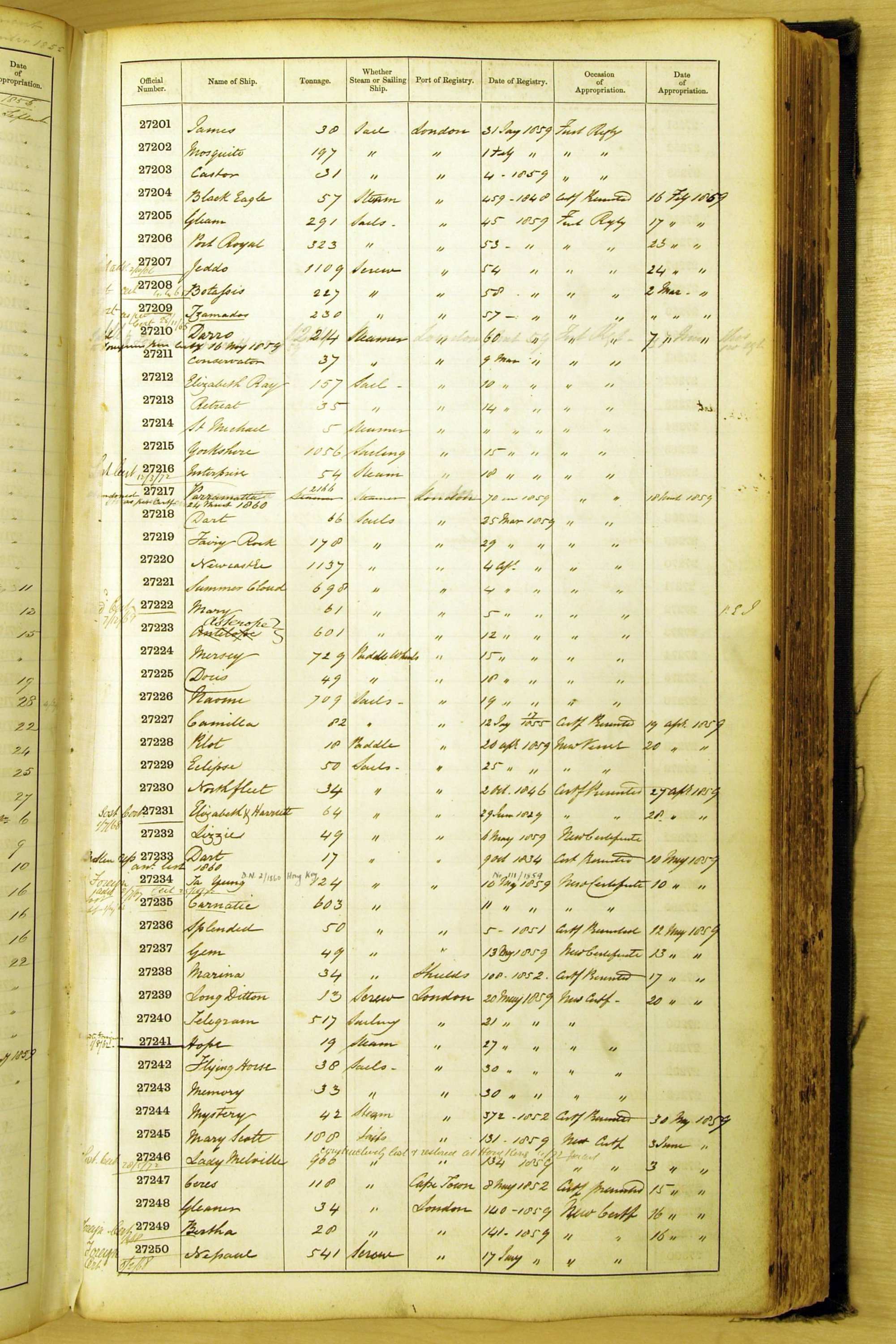 Bear in mind that the ships names in the Appropriation Books are not the definitive name or spelling of the name, even though these are the central records for the whole system. As you can see, the entries are hand-written and derived from hand-written returns made by the various ports, themselves based on the hand-written shipping registers, based on what the port officials thought the person registering the ship was saying or had hand-written down.