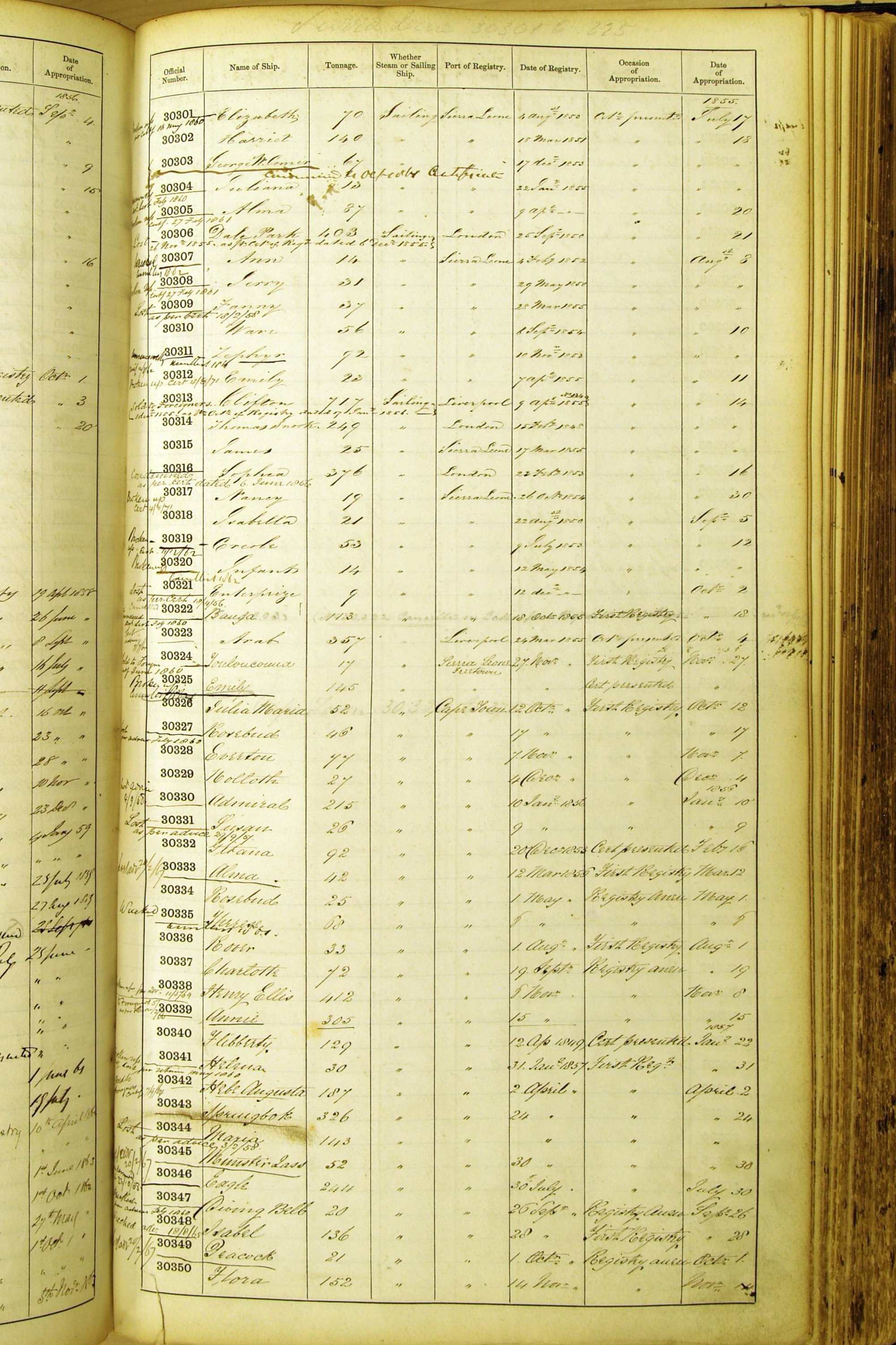 Bear in mind that the ships names in the Appropriation Books are not the definitive name or spelling of the name, even though these are the central records for the whole system. As you can see, the entries are hand-written and derived from hand-written returns made by the various ports, themselves based on the hand-written shipping registers, based on what the port officials thought the person registering the ship was saying or had hand-written down.