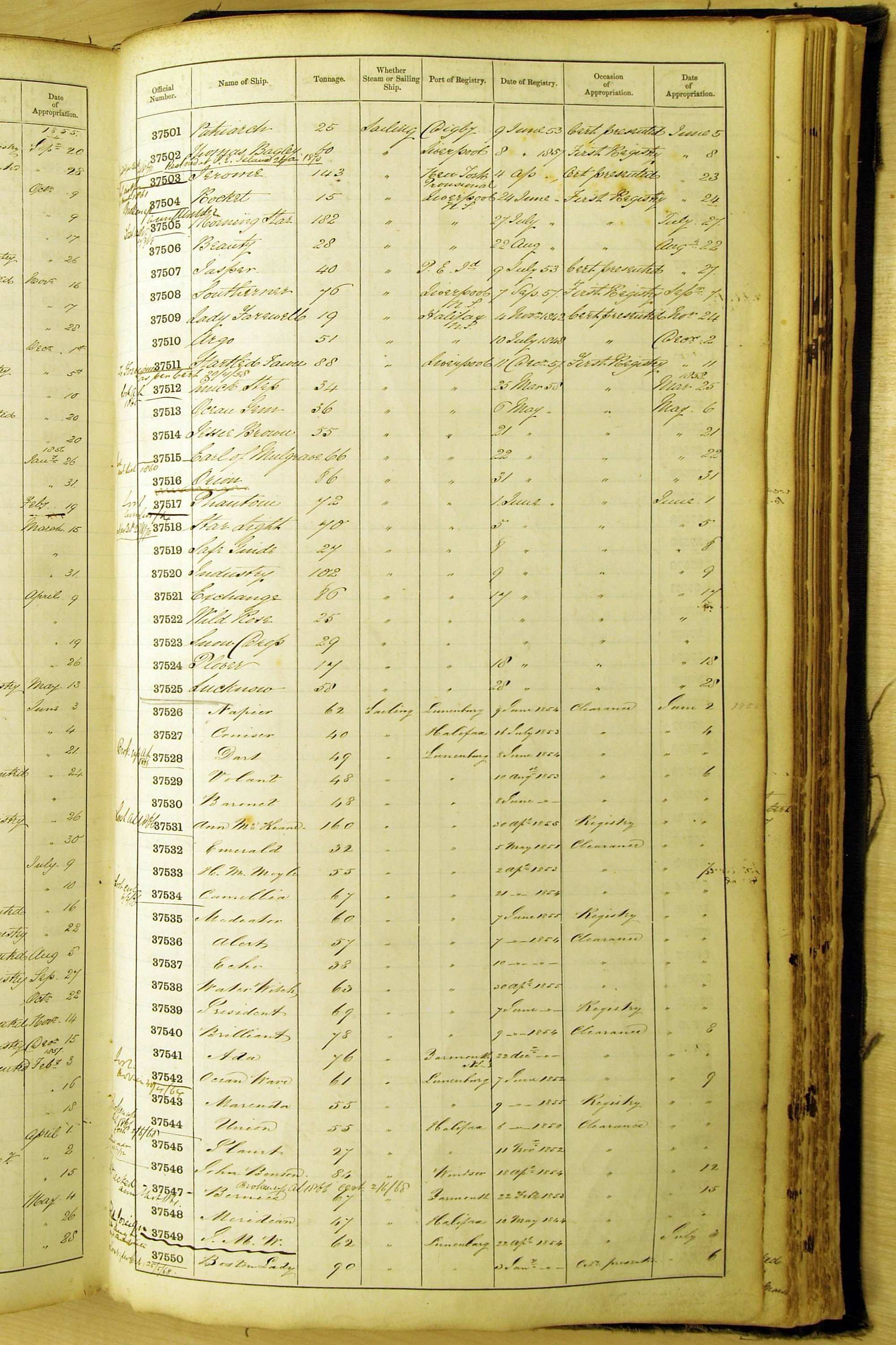 Bear in mind that the ships names in the Appropriation Books are not the definitive name or spelling of the name, even though these are the central records for the whole system. As you can see, the entries are hand-written and derived from hand-written returns made by the various ports, themselves based on the hand-written shipping registers, based on what the port officials thought the person registering the ship was saying or had hand-written down.