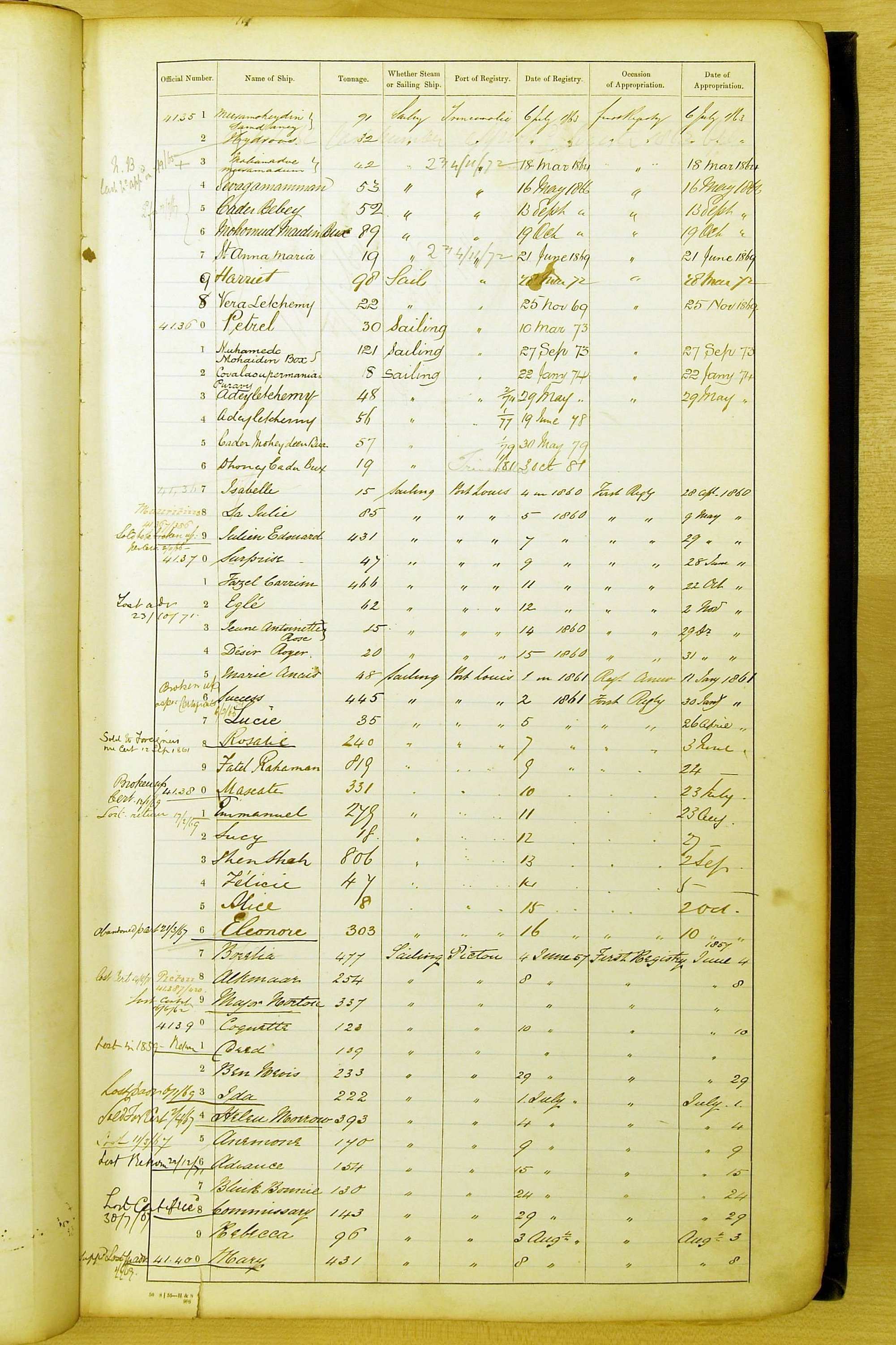 The ship names recorded are those that the ships carried at the time that their official numbers were allocated - changes are sometimes noted, but the best source for changes of name are the shipping registers for the port, or alternatively the Mercantile Navy List.