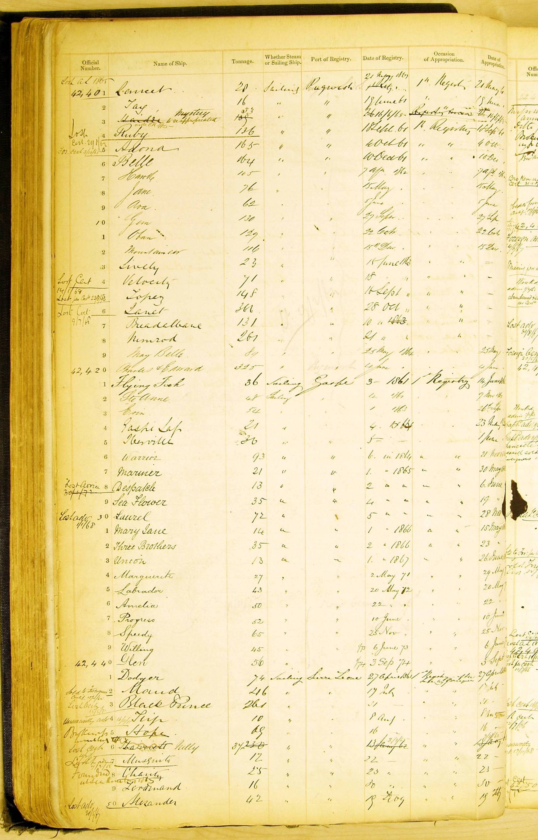 The images were made by CLIP from the original volumes held at the Registry of Shipping and Seamen in Cardiff and we would like to thank the staff for their helpfulness in providing us with access to the volumes.