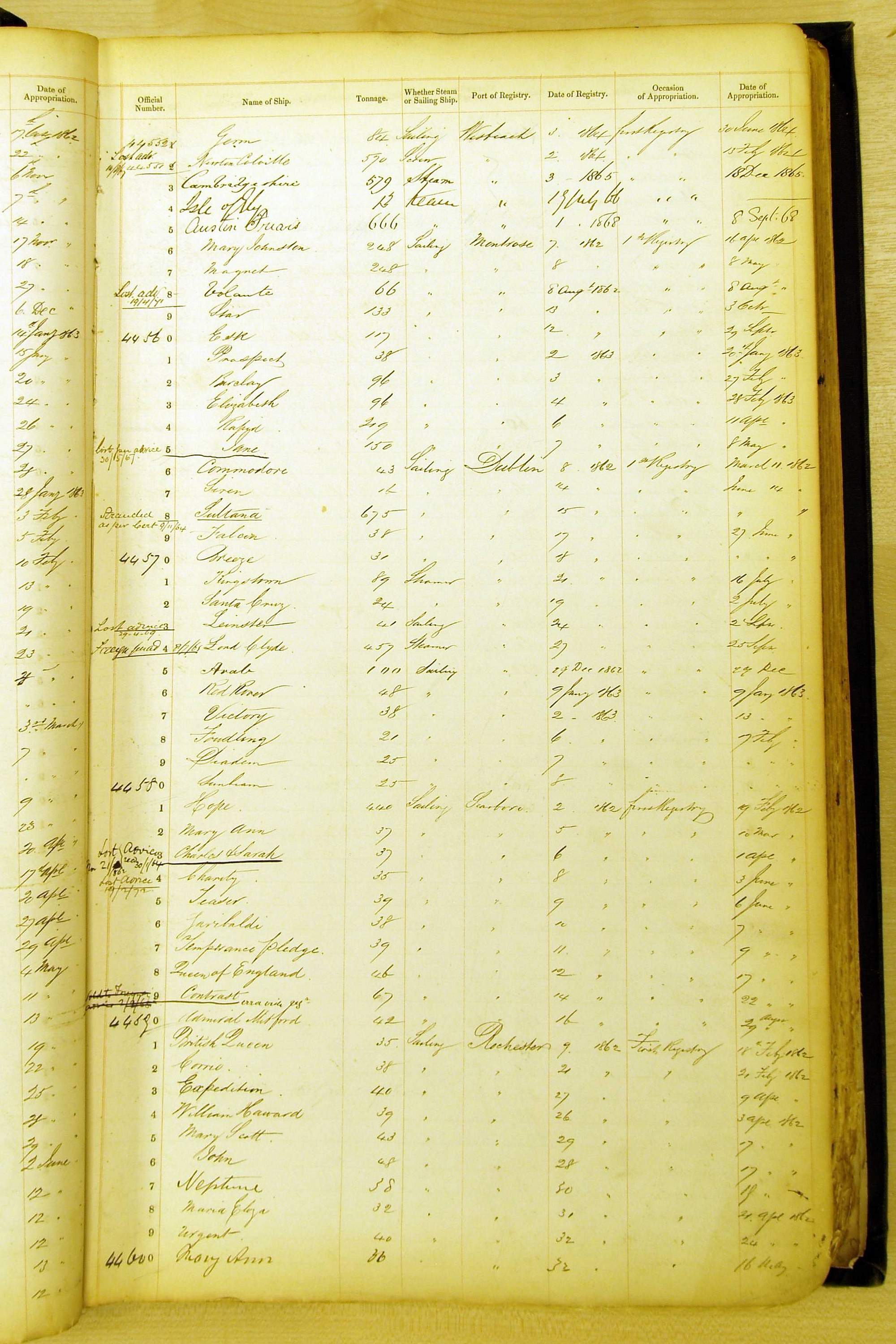 Bear in mind that the ships names in the Appropriation Books are not the definitive name or spelling of the name, even though these are the central records for the whole system. As you can see, the entries are hand-written and derived from hand-written returns made by the various ports, themselves based on the hand-written shipping registers, based on what the port officials thought the person registering the ship was saying or had hand-written down.