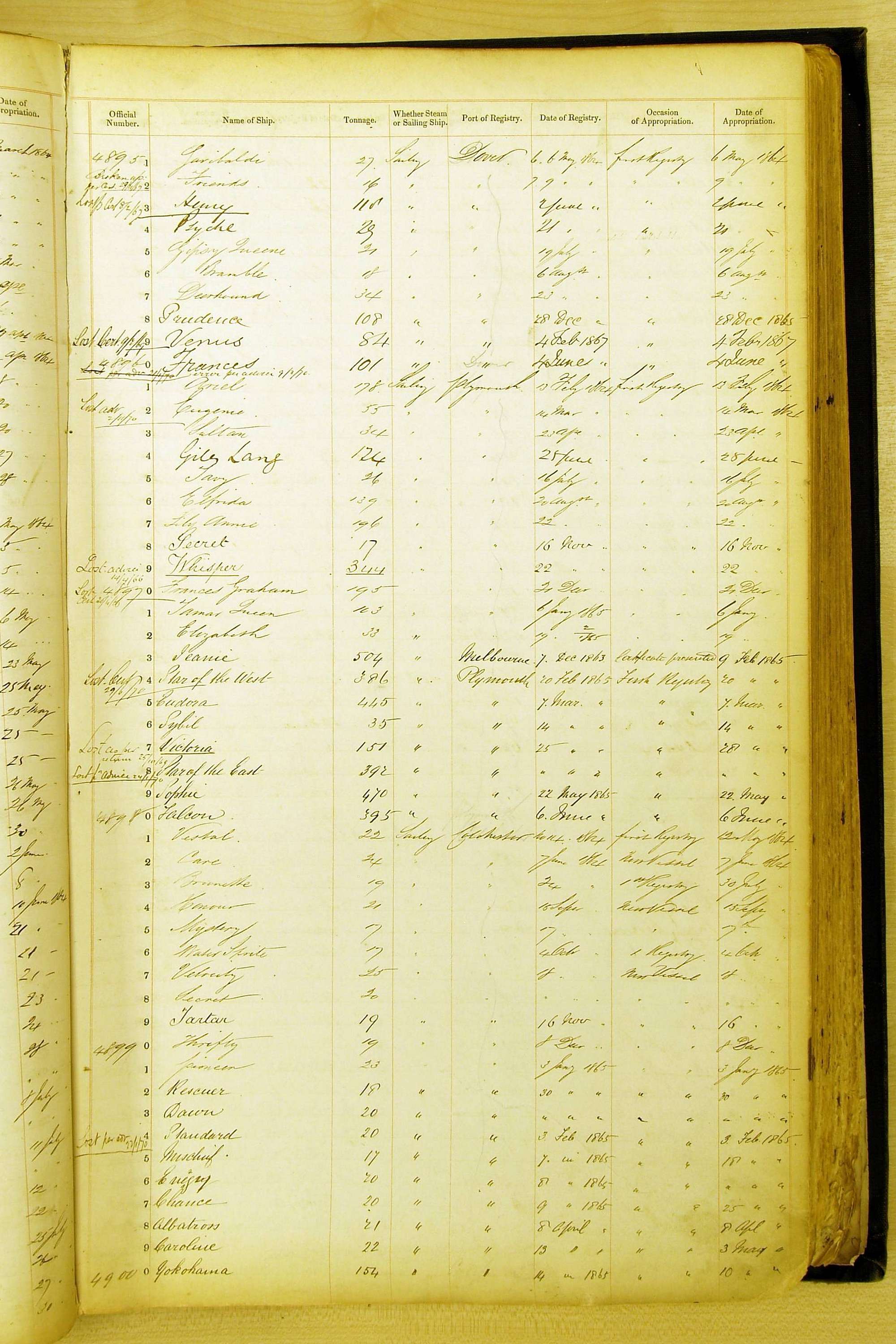 Bear in mind that the ships names in the Appropriation Books are not the definitive name or spelling of the name, even though these are the central records for the whole system. As you can see, the entries are hand-written and derived from hand-written returns made by the various ports, themselves based on the hand-written shipping registers, based on what the port officials thought the person registering the ship was saying or had hand-written down.