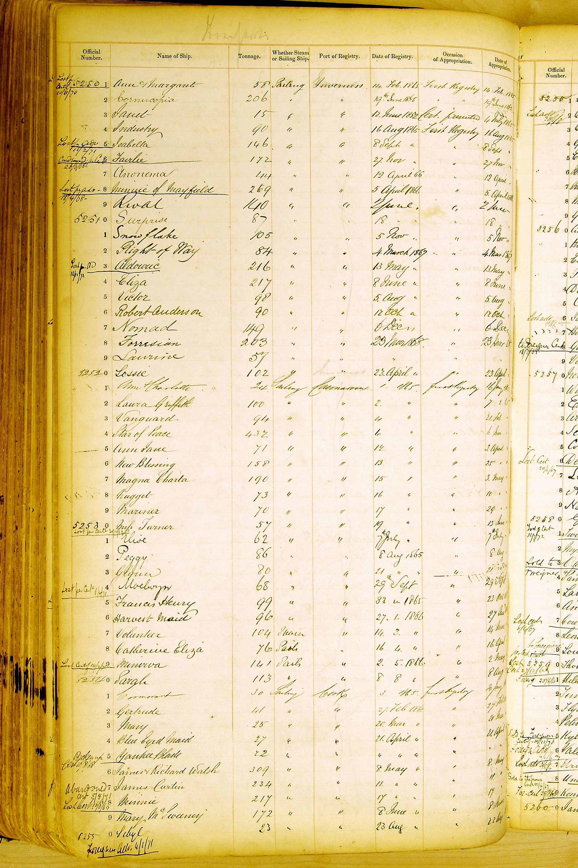 Bear in mind that the ships names in the Appropriation Books are not the definitive name or spelling of the name, even though these are the central records for the whole system. As you can see, the entries are hand-written and derived from hand-written returns made by the various ports, themselves based on the hand-written shipping registers, based on what the port officials thought the person registering the ship was saying or had hand-written down.