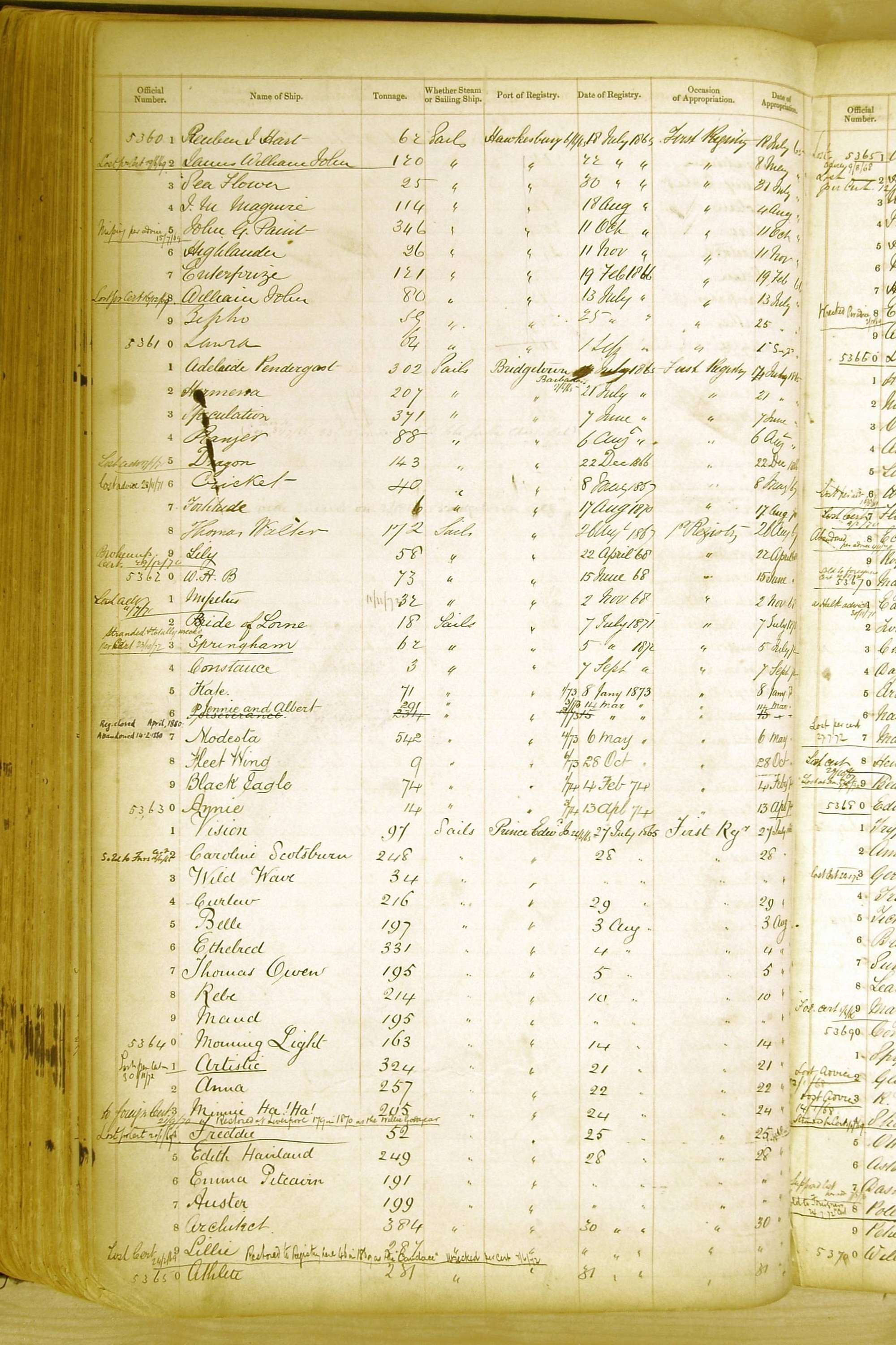 The images were made by CLIP from the original volumes held at the Registry of Shipping and Seamen in Cardiff and we would like to thank the staff for their helpfulness in providing us with access to the volumes.