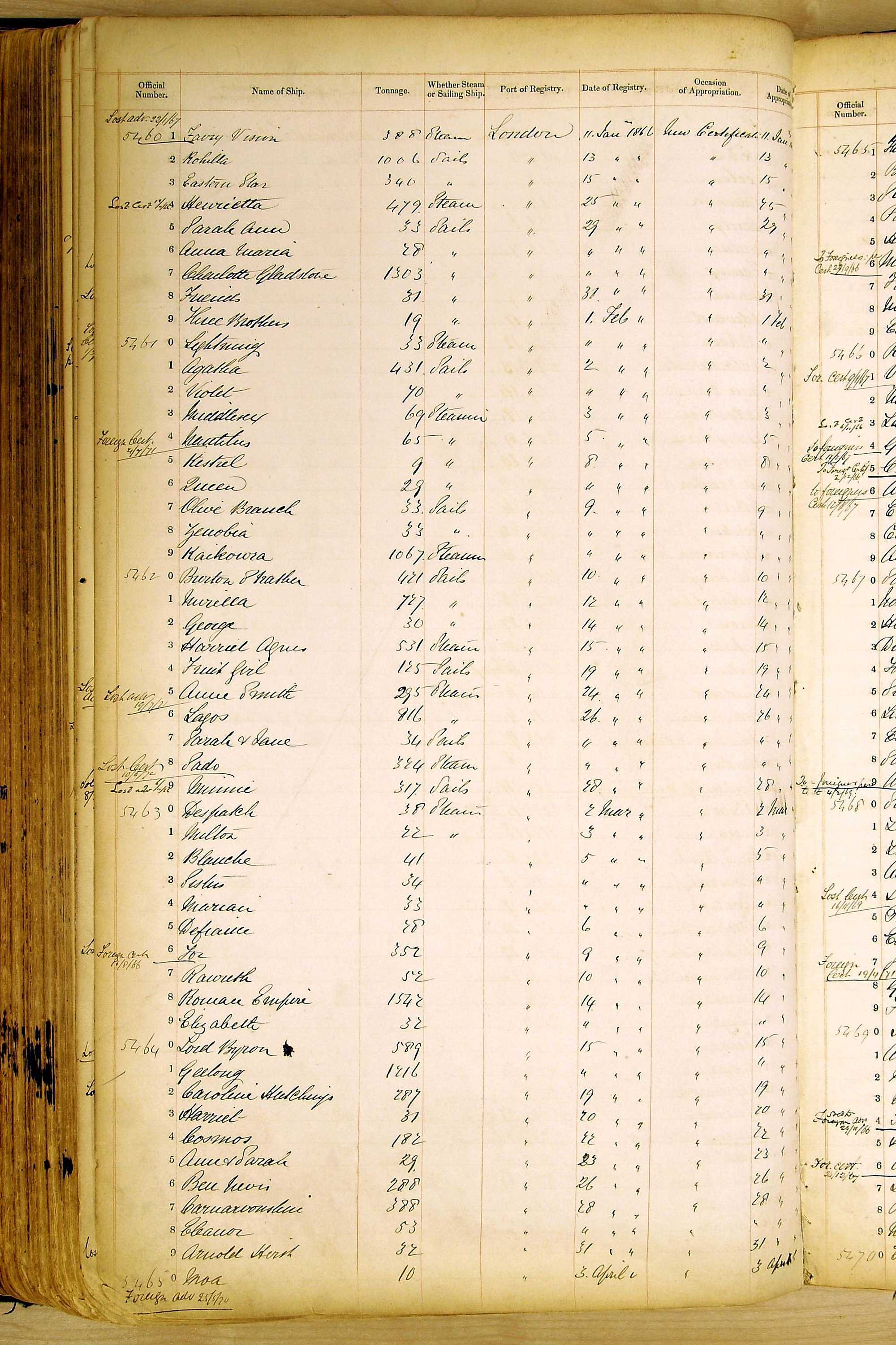 When the system of official numbers began on 16 April 1855, the British Ports of Registry were each allocated batches of official numbers. For official numbers up to 22200 you can see this allocation as a pencil note at the top of the page where the allocation began. A summary of the first allocation is shown here: Initial allocation of official numbers