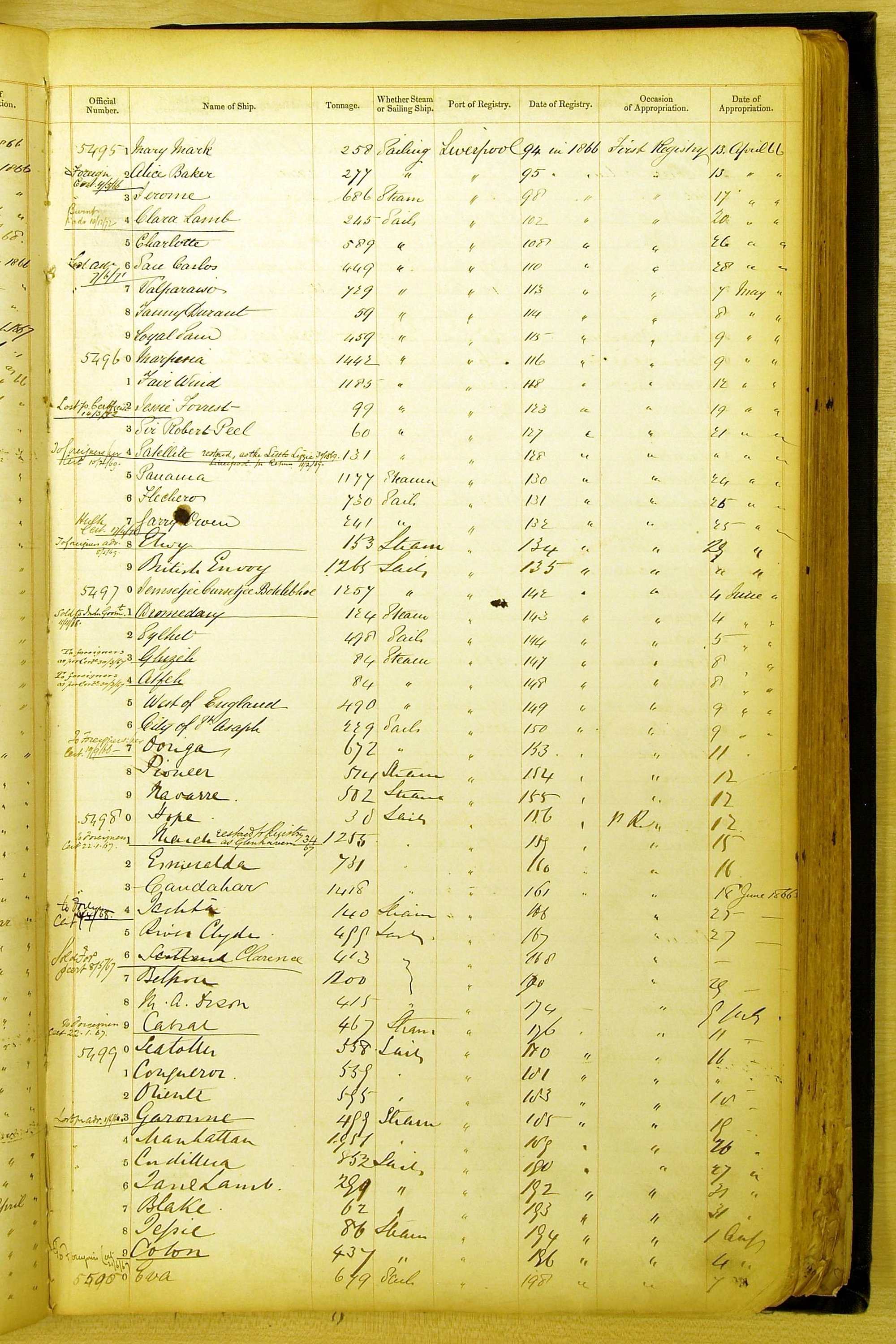 The images were made by CLIP from the original volumes held at the Registry of Shipping and Seamen in Cardiff and we would like to thank the staff for their helpfulness in providing us with access to the volumes.