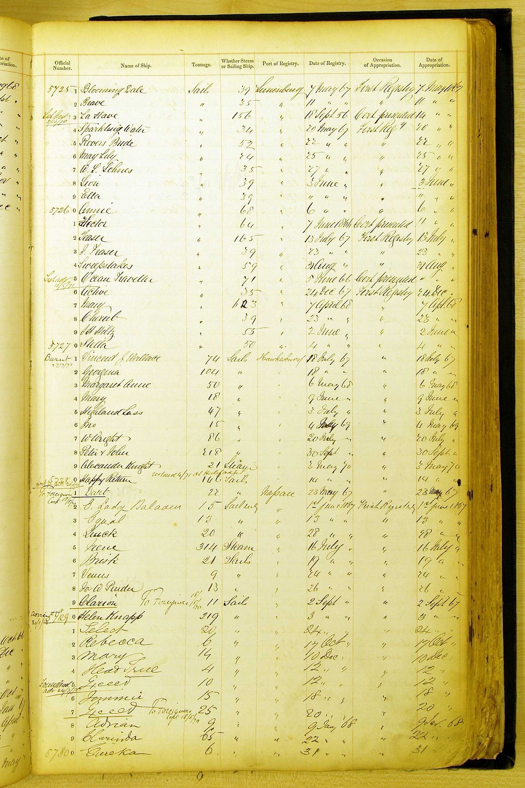 Bear in mind that the ships names in the Appropriation Books are not the definitive name or spelling of the name, even though these are the central records for the whole system. As you can see, the entries are hand-written and derived from hand-written returns made by the various ports, themselves based on the hand-written shipping registers, based on what the port officials thought the person registering the ship was saying or had hand-written down.