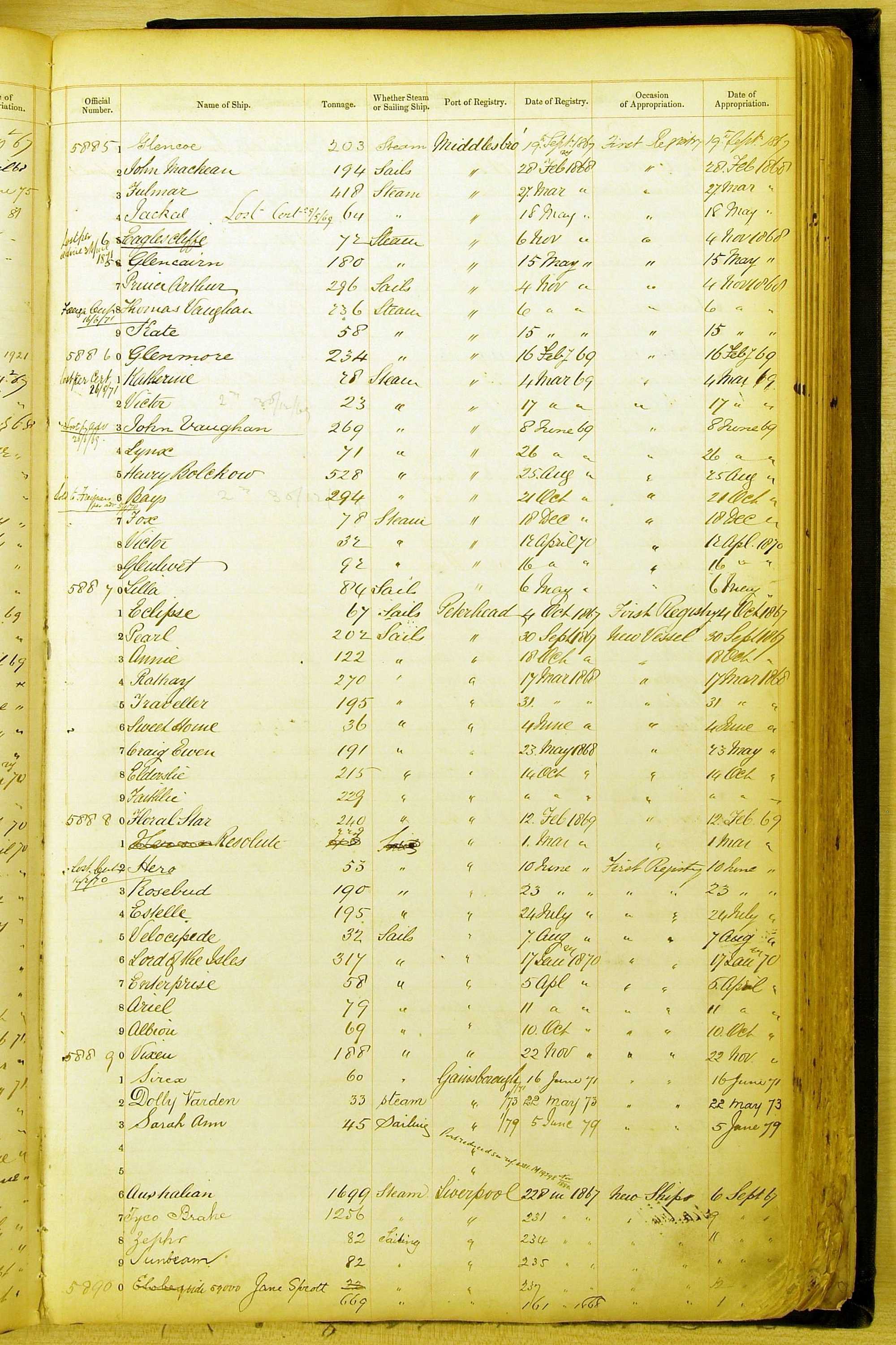 The ship names recorded are those that the ships carried at the time that their official numbers were allocated - changes are sometimes noted, but the best source for changes of name are the shipping registers for the port, or alternatively the Mercantile Navy List.