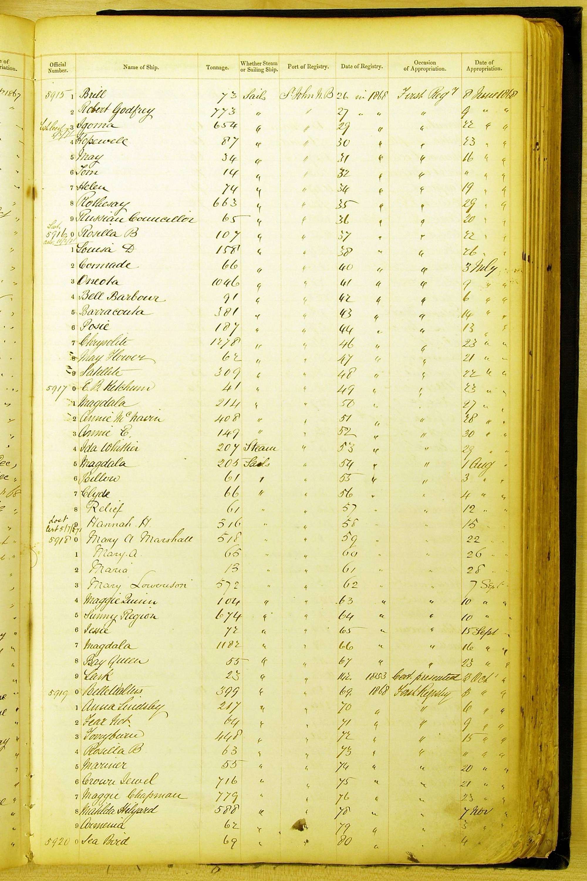 Bear in mind that the ships names in the Appropriation Books are not the definitive name or spelling of the name, even though these are the central records for the whole system. As you can see, the entries are hand-written and derived from hand-written returns made by the various ports, themselves based on the hand-written shipping registers, based on what the port officials thought the person registering the ship was saying or had hand-written down.