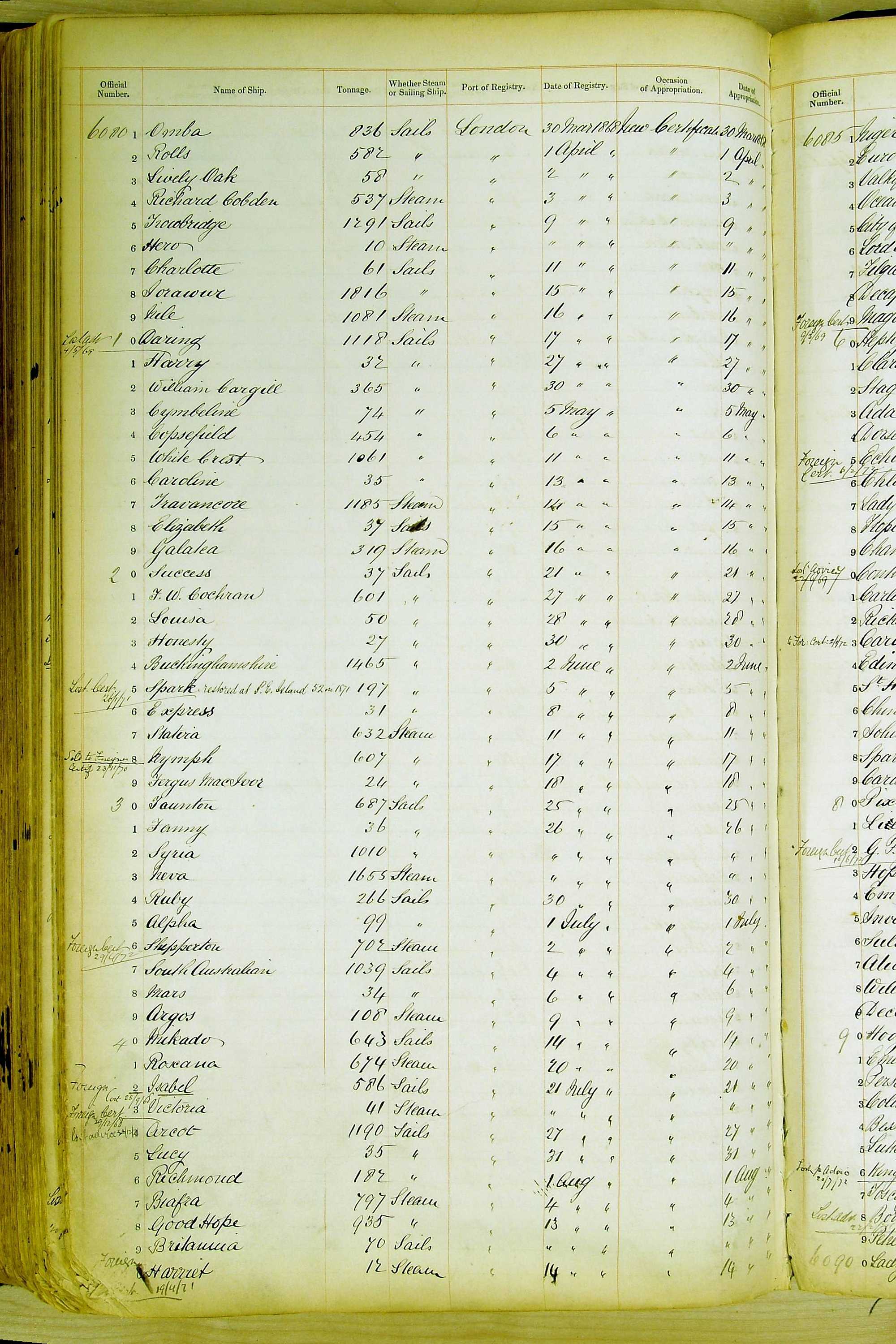 When the system of official numbers began on 16 April 1855, the British Ports of Registry were each allocated batches of official numbers. For official numbers up to 22200 you can see this allocation as a pencil note at the top of the page where the allocation began. A summary of the first allocation is shown here: Initial allocation of official numbers