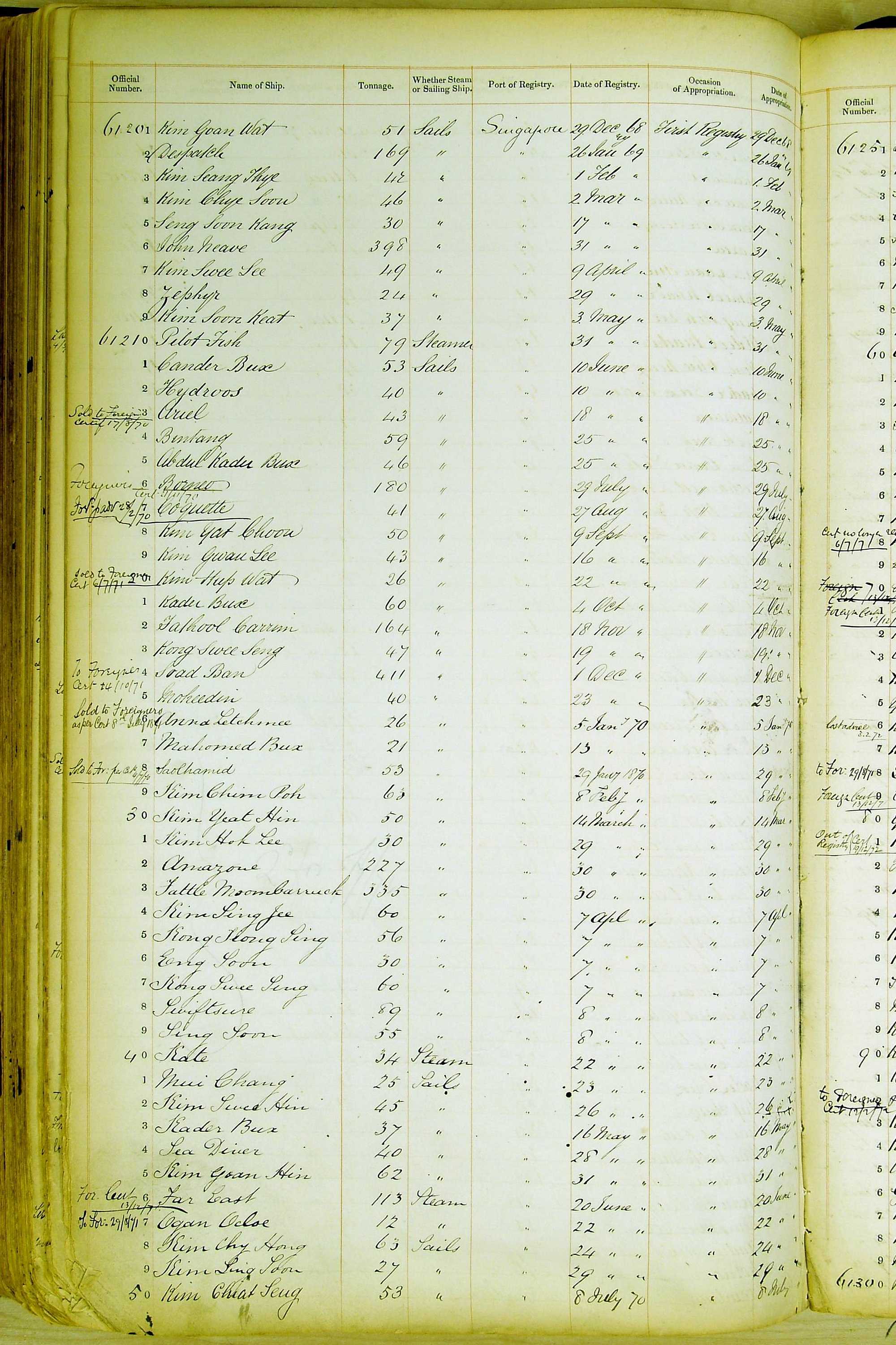 The ship names recorded are those that the ships carried at the time that their official numbers were allocated - changes are sometimes noted, but the best source for changes of name are the shipping registers for the port, or alternatively the Mercantile Navy List.