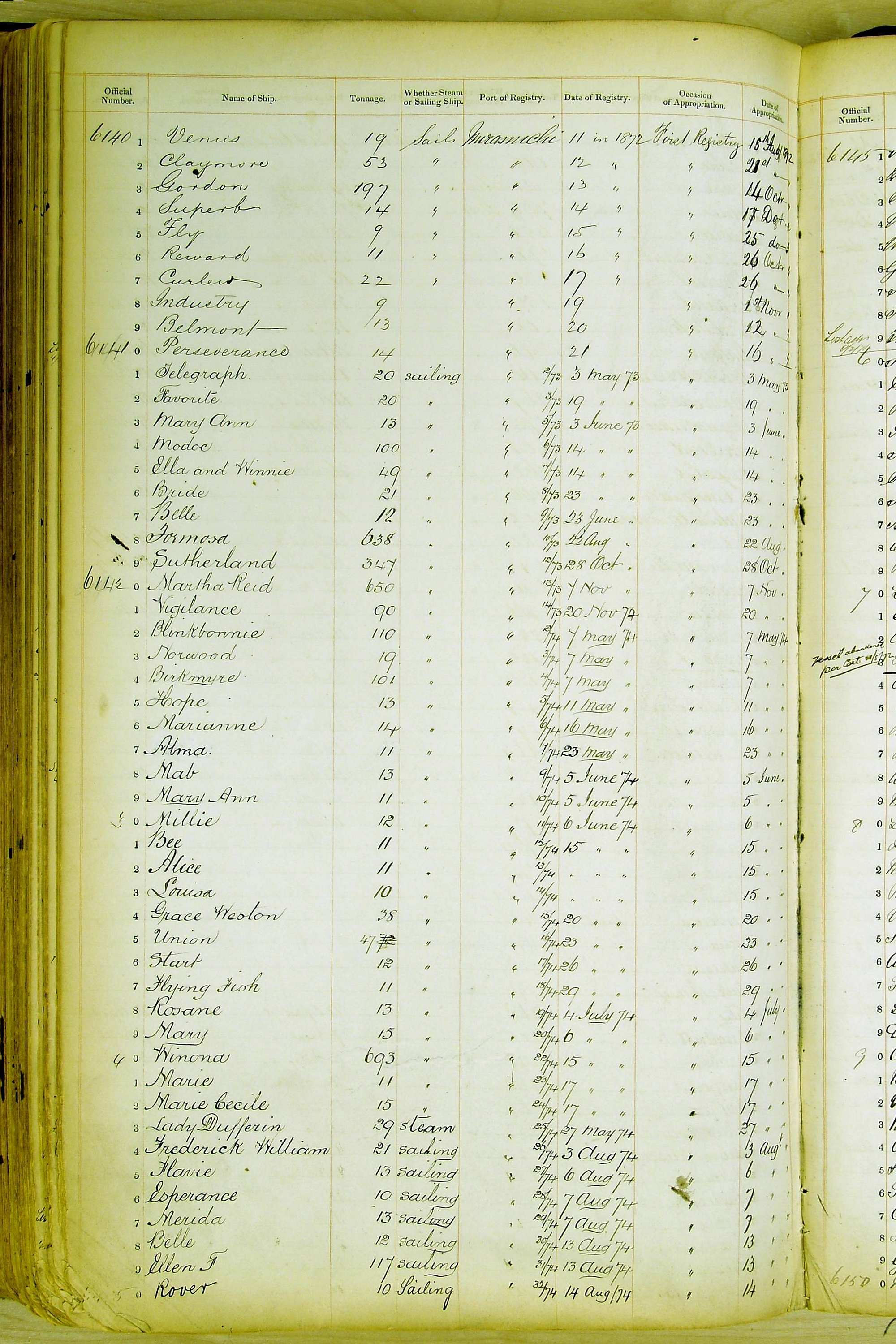 The ship names recorded are those that the ships carried at the time that their official numbers were allocated - changes are sometimes noted, but the best source for changes of name are the shipping registers for the port, or alternatively the Mercantile Navy List.