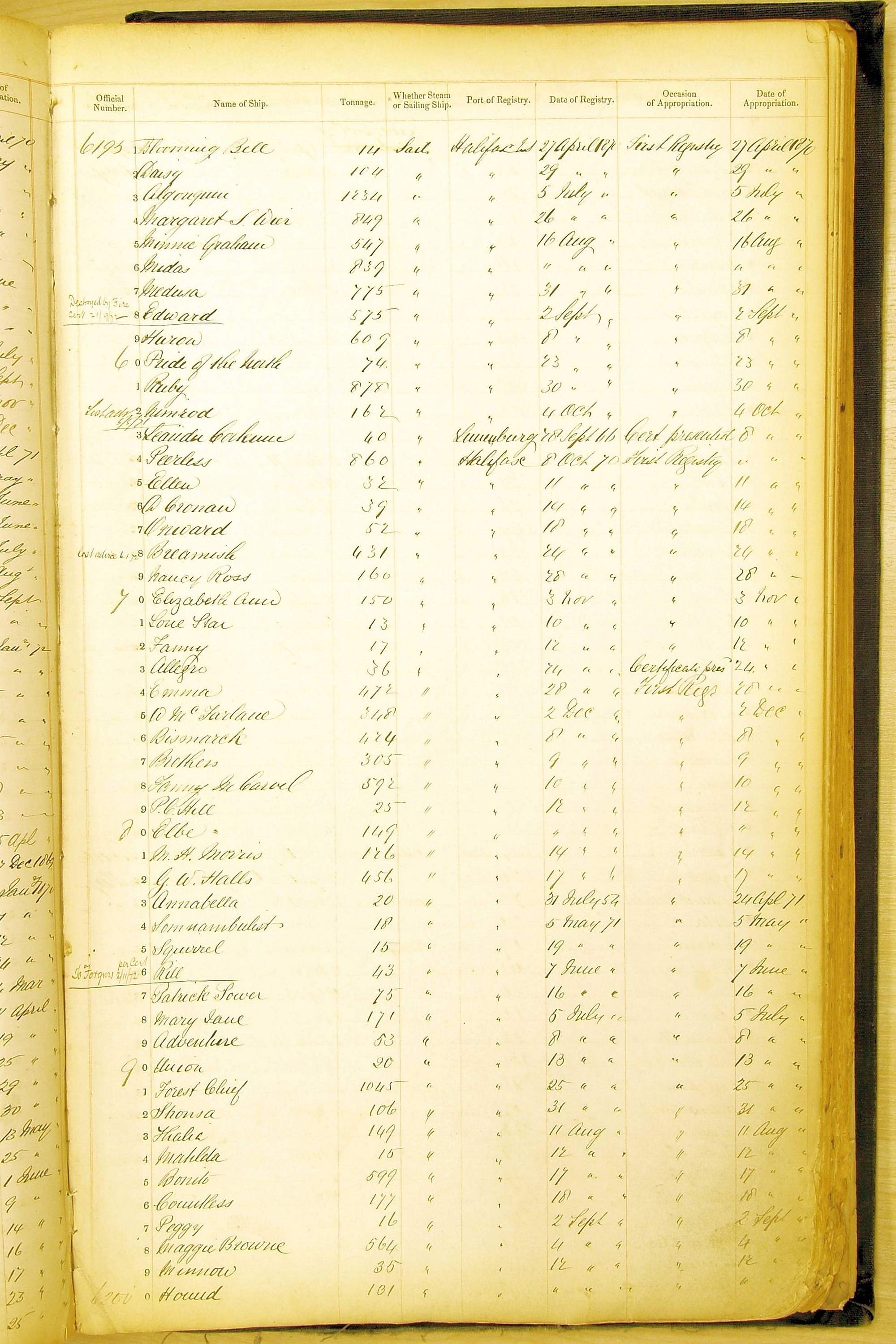 Bear in mind that the ships names in the Appropriation Books are not the definitive name or spelling of the name, even though these are the central records for the whole system. As you can see, the entries are hand-written and derived from hand-written returns made by the various ports, themselves based on the hand-written shipping registers, based on what the port officials thought the person registering the ship was saying or had hand-written down.