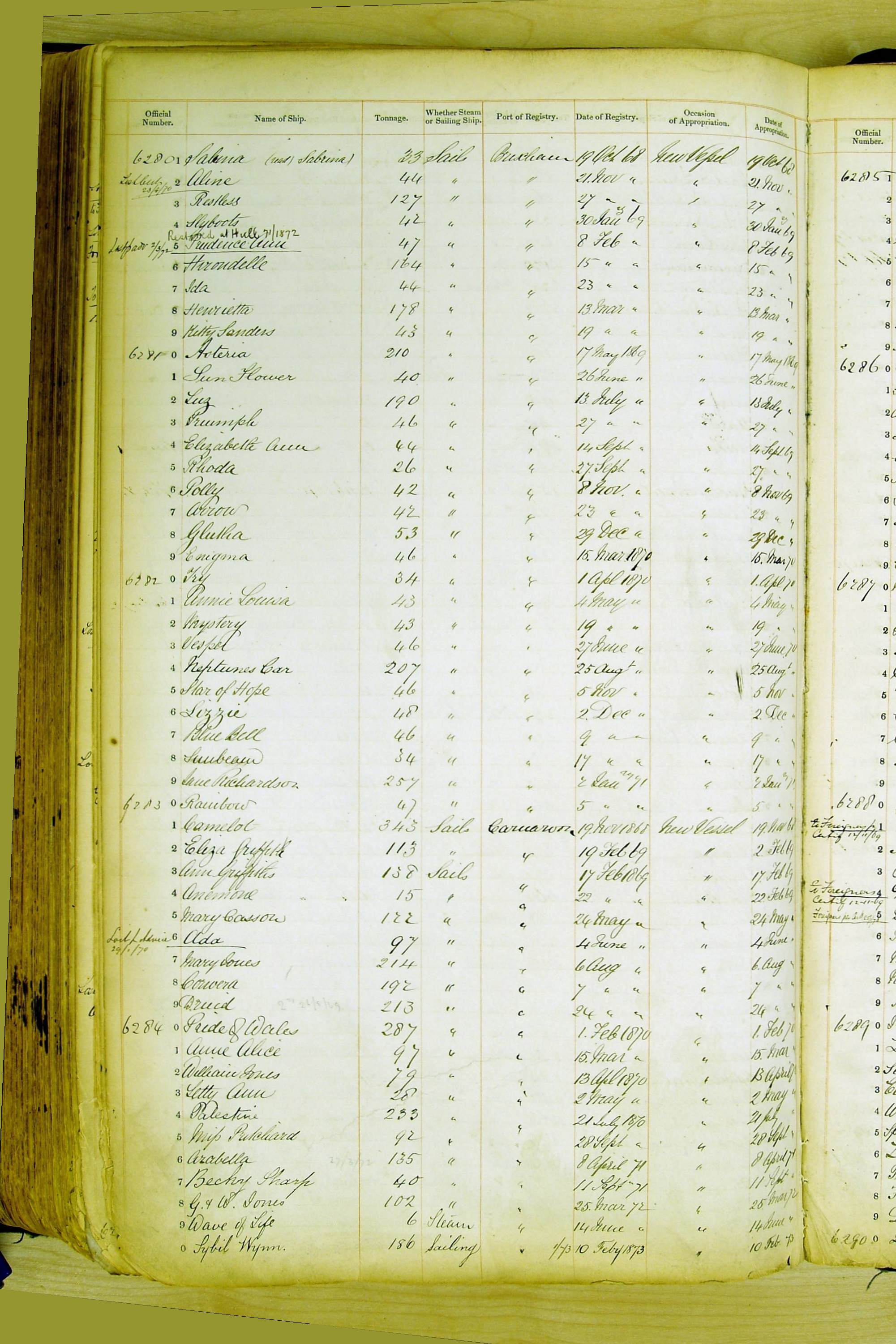 When the system of official numbers began on 16 April 1855, the British Ports of Registry were each allocated batches of official numbers. For official numbers up to 22200 you can see this allocation as a pencil note at the top of the page where the allocation began. A summary of the first allocation is shown here: Initial allocation of official numbers