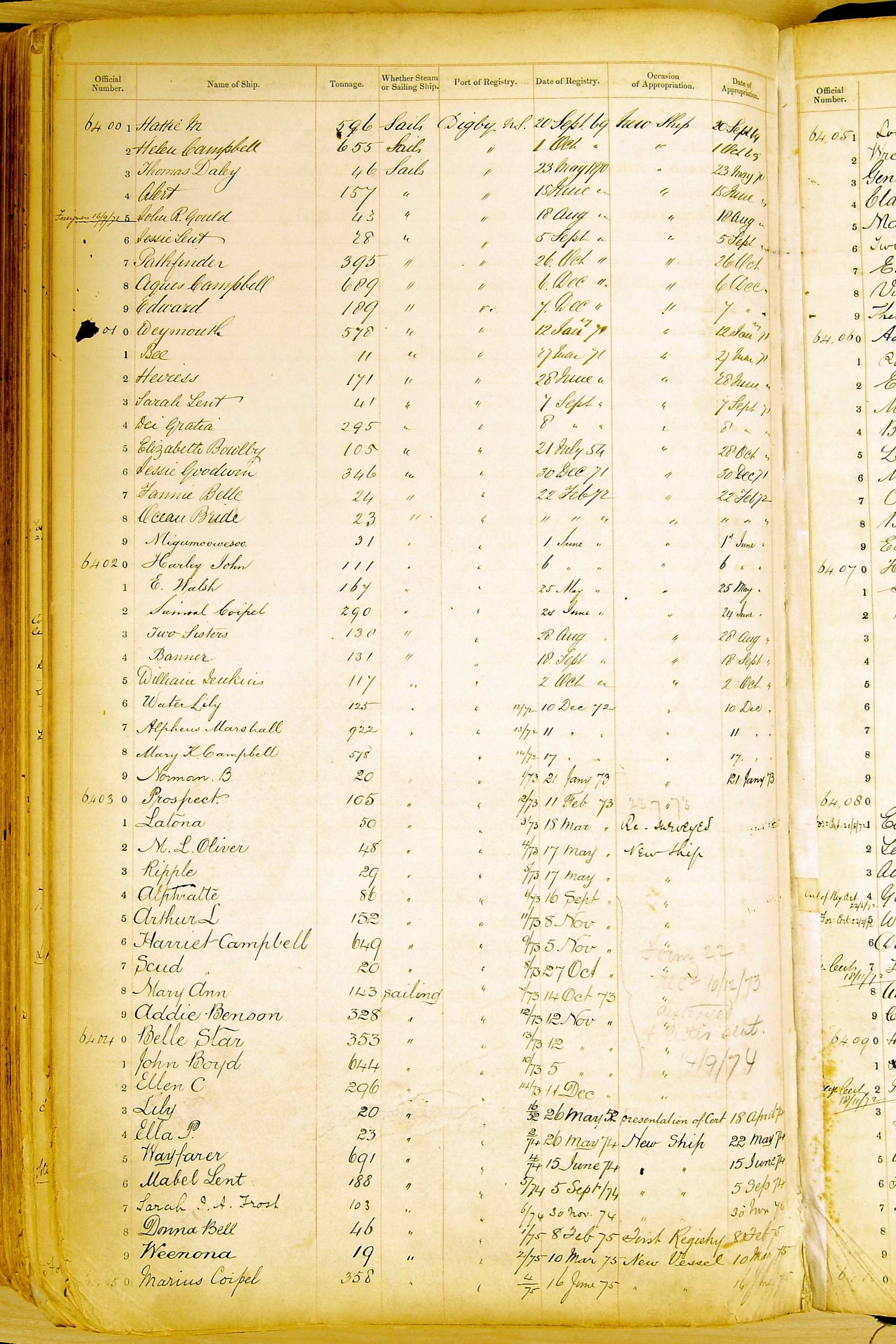 Bear in mind that the ships names in the Appropriation Books are not the definitive name or spelling of the name, even though these are the central records for the whole system. As you can see, the entries are hand-written and derived from hand-written returns made by the various ports, themselves based on the hand-written shipping registers, based on what the port officials thought the person registering the ship was saying or had hand-written down.
