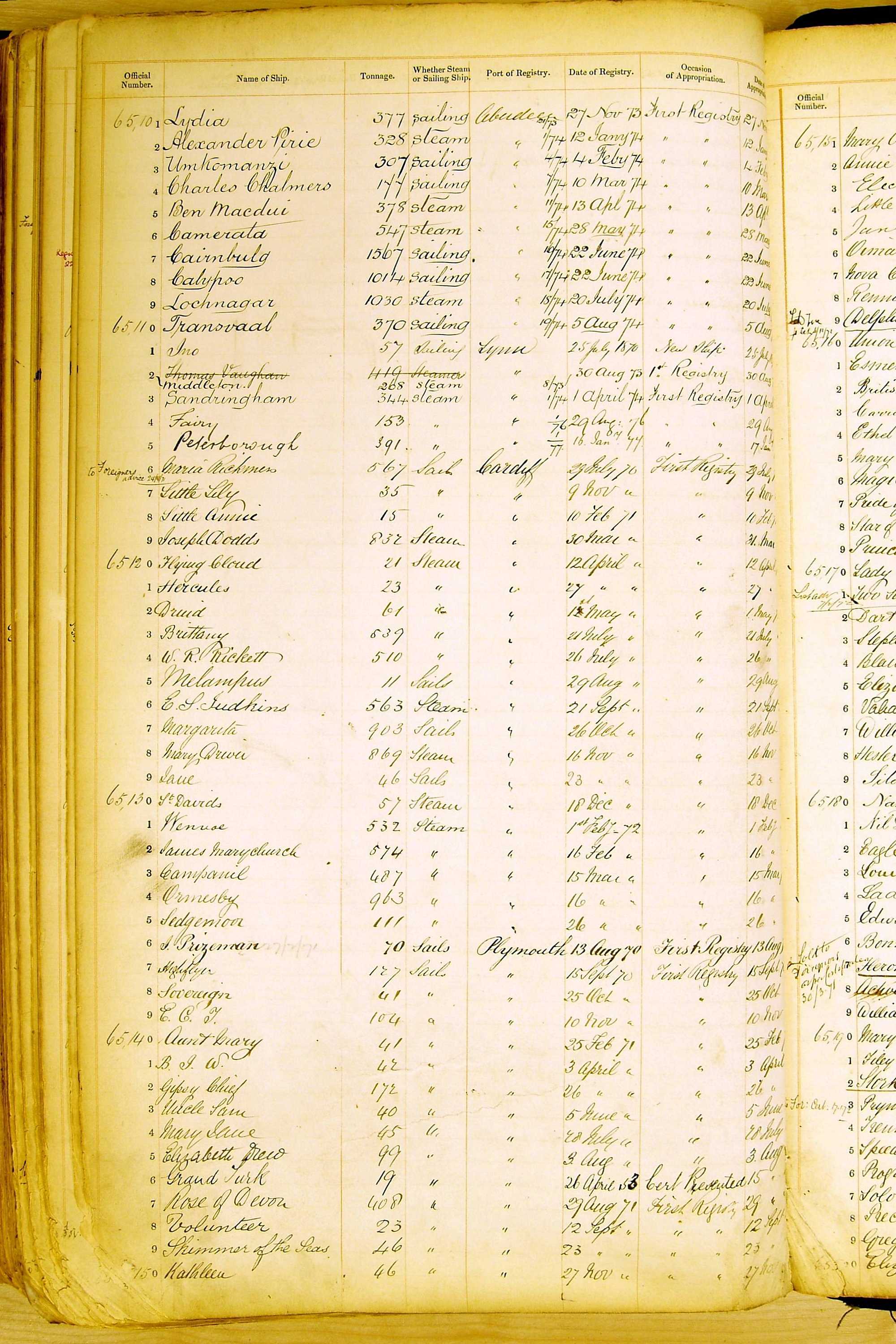 The ship names recorded are those that the ships carried at the time that their official numbers were allocated - changes are sometimes noted, but the best source for changes of name are the shipping registers for the port, or alternatively the Mercantile Navy List.