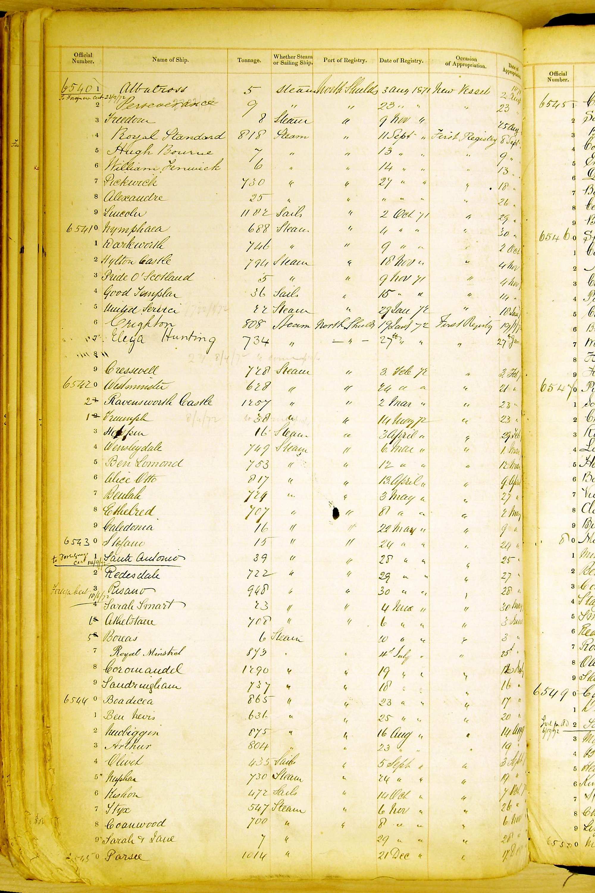 The ship names recorded are those that the ships carried at the time that their official numbers were allocated - changes are sometimes noted, but the best source for changes of name are the shipping registers for the port, or alternatively the Mercantile Navy List.
