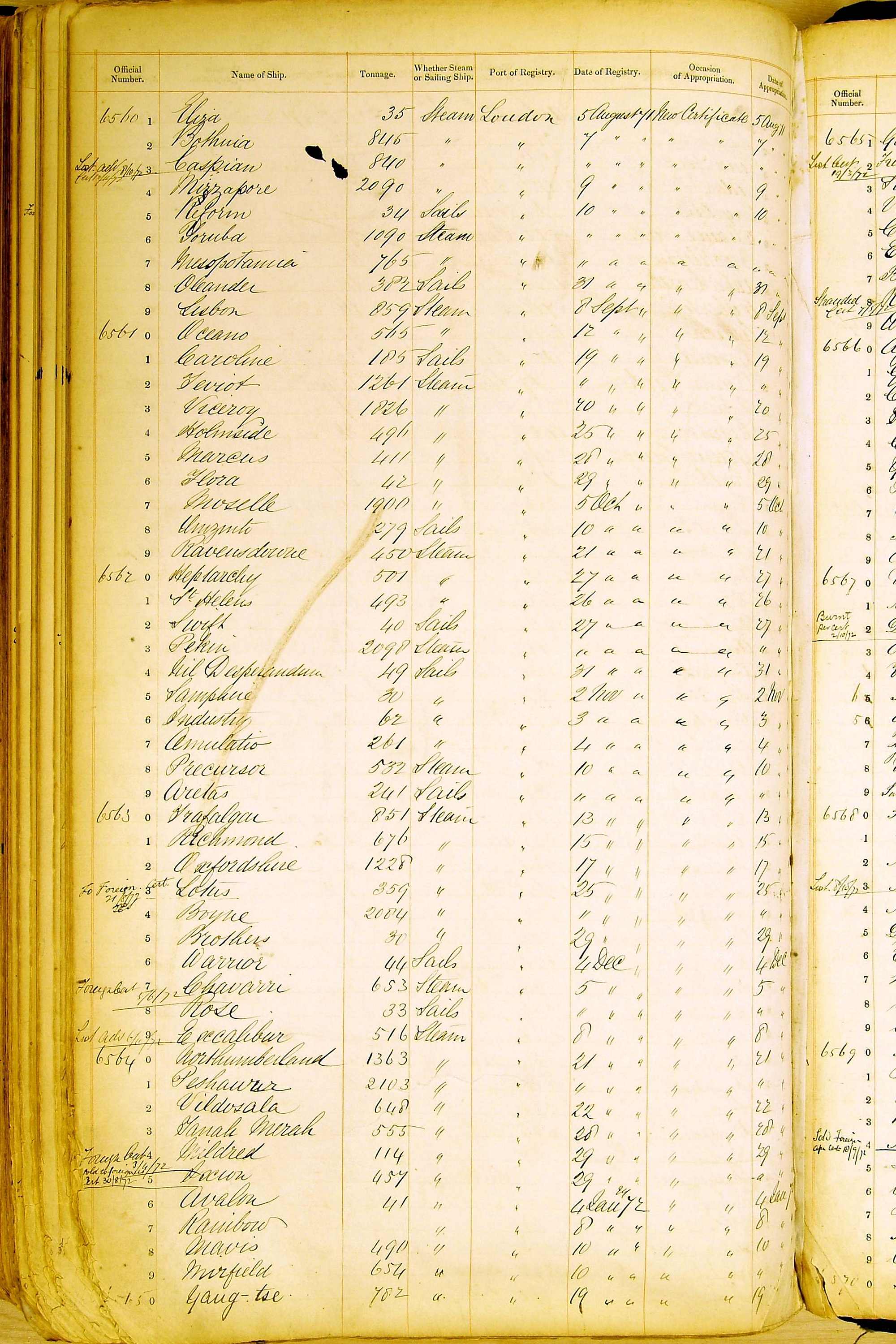 The ship names recorded are those that the ships carried at the time that their official numbers were allocated - changes are sometimes noted, but the best source for changes of name are the shipping registers for the port, or alternatively the Mercantile Navy List.