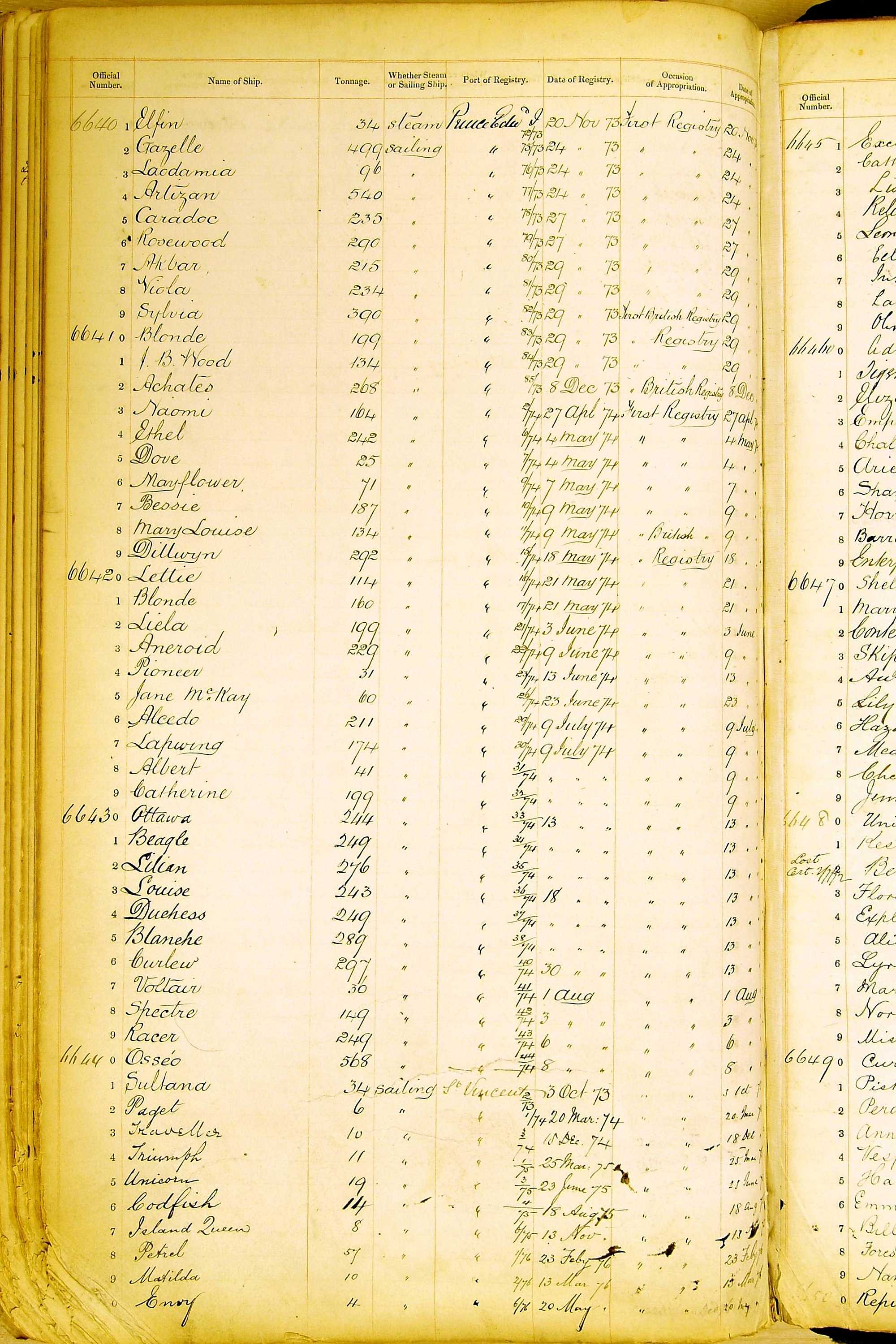 The ship names recorded are those that the ships carried at the time that their official numbers were allocated - changes are sometimes noted, but the best source for changes of name are the shipping registers for the port, or alternatively the Mercantile Navy List.