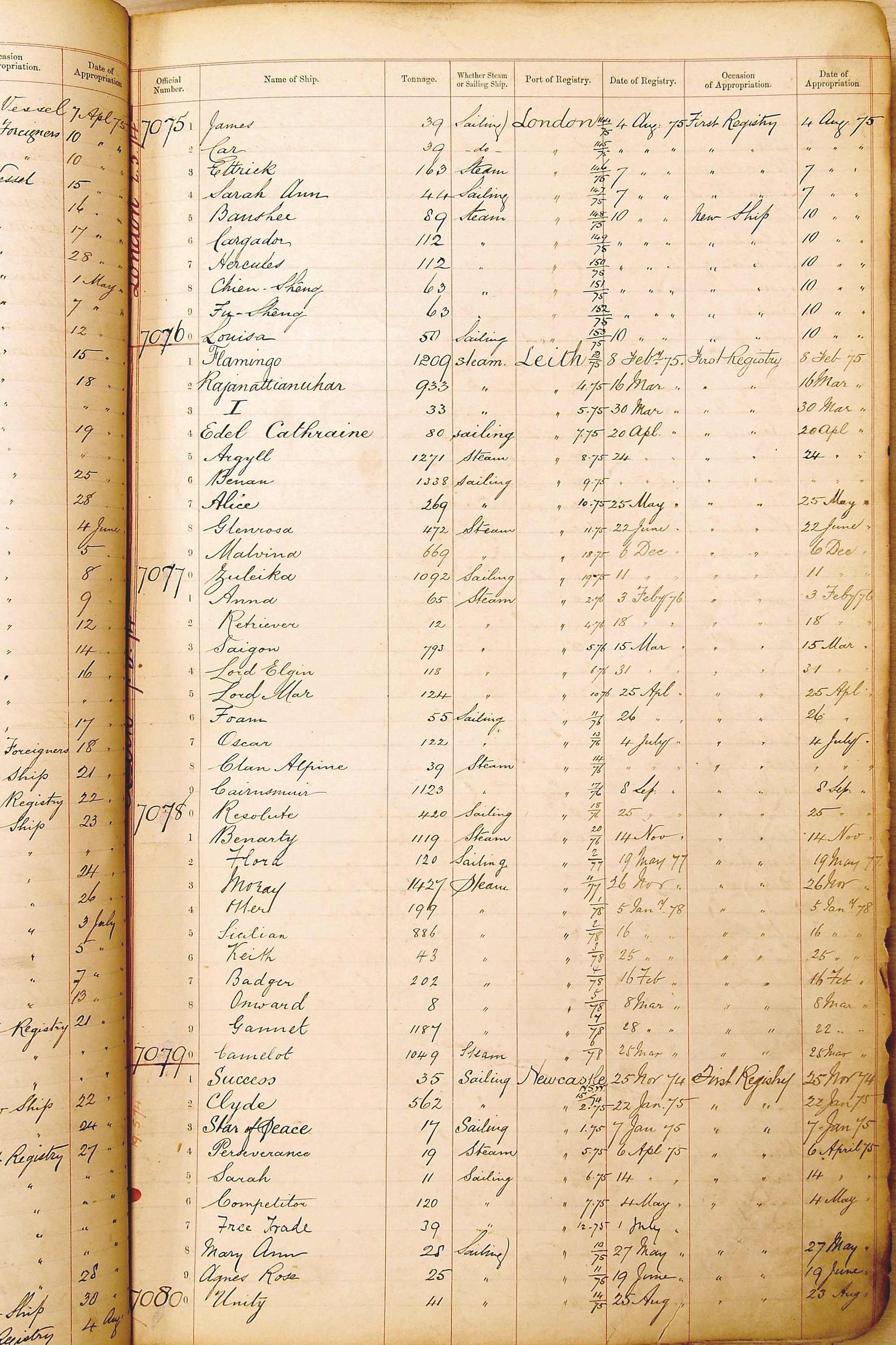 The ship names recorded are those that the ships carried at the time that their official numbers were allocated - changes are sometimes noted, but the best source for changes of name are the shipping registers for the port, or alternatively the Mercantile Navy List.