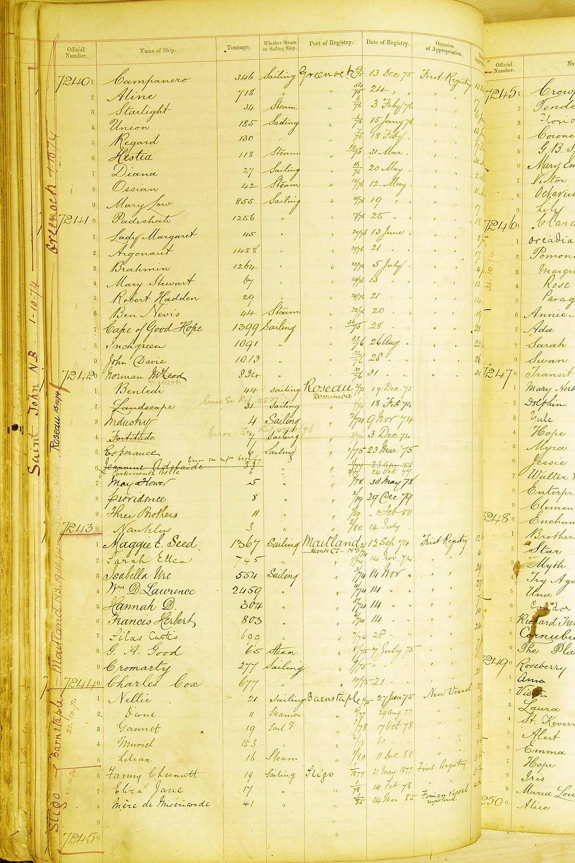 Bear in mind that the ships names in the Appropriation Books are not the definitive name or spelling of the name, even though these are the central records for the whole system. As you can see, the entries are hand-written and derived from hand-written returns made by the various ports, themselves based on the hand-written shipping registers, based on what the port officials thought the person registering the ship was saying or had hand-written down.