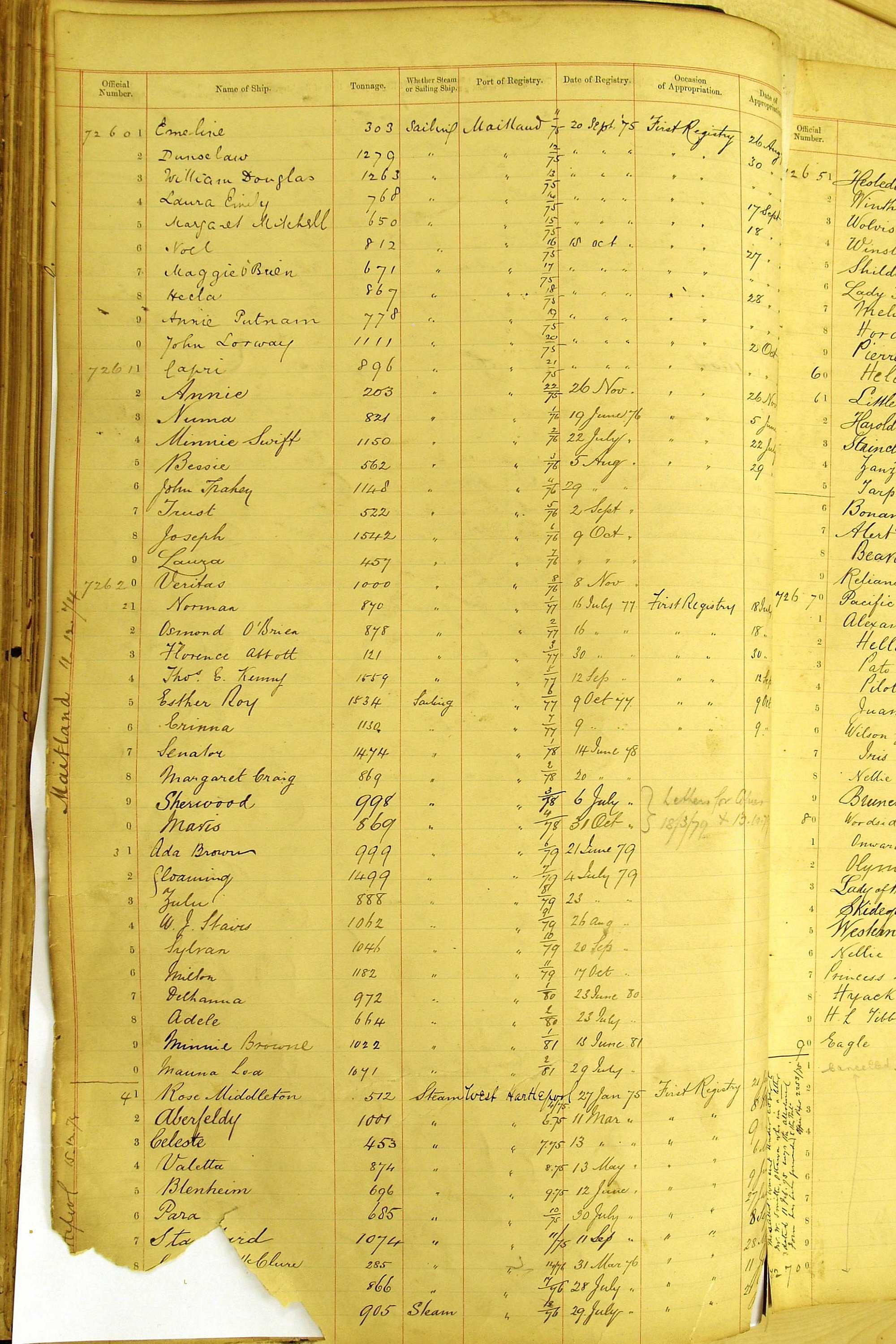 When the system of official numbers began on 16 April 1855, the British Ports of Registry were each allocated batches of official numbers. For official numbers up to 22200 you can see this allocation as a pencil note at the top of the page where the allocation began. A summary of the first allocation is shown here: Initial allocation of official numbers