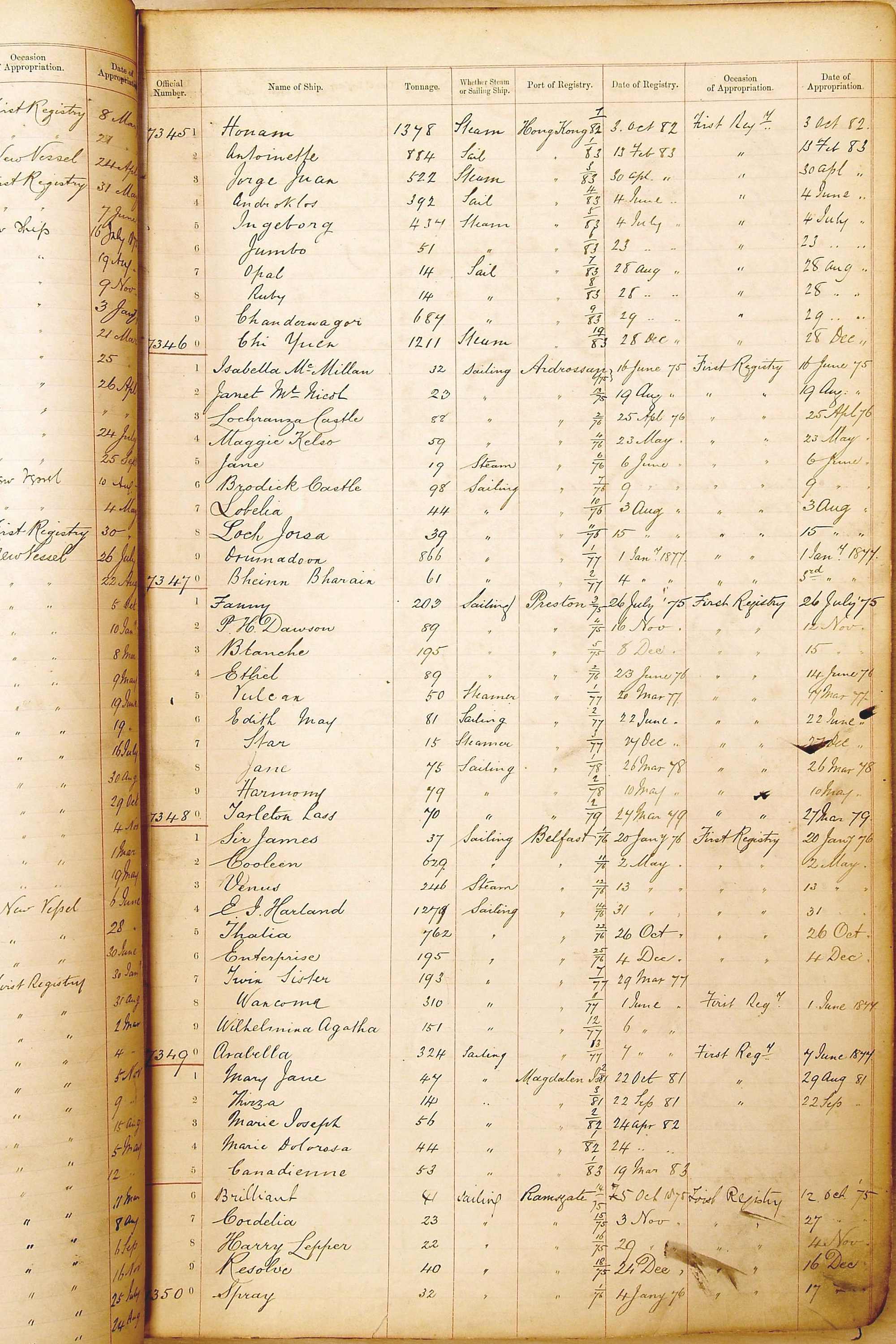 Bear in mind that the ships names in the Appropriation Books are not the definitive name or spelling of the name, even though these are the central records for the whole system. As you can see, the entries are hand-written and derived from hand-written returns made by the various ports, themselves based on the hand-written shipping registers, based on what the port officials thought the person registering the ship was saying or had hand-written down.