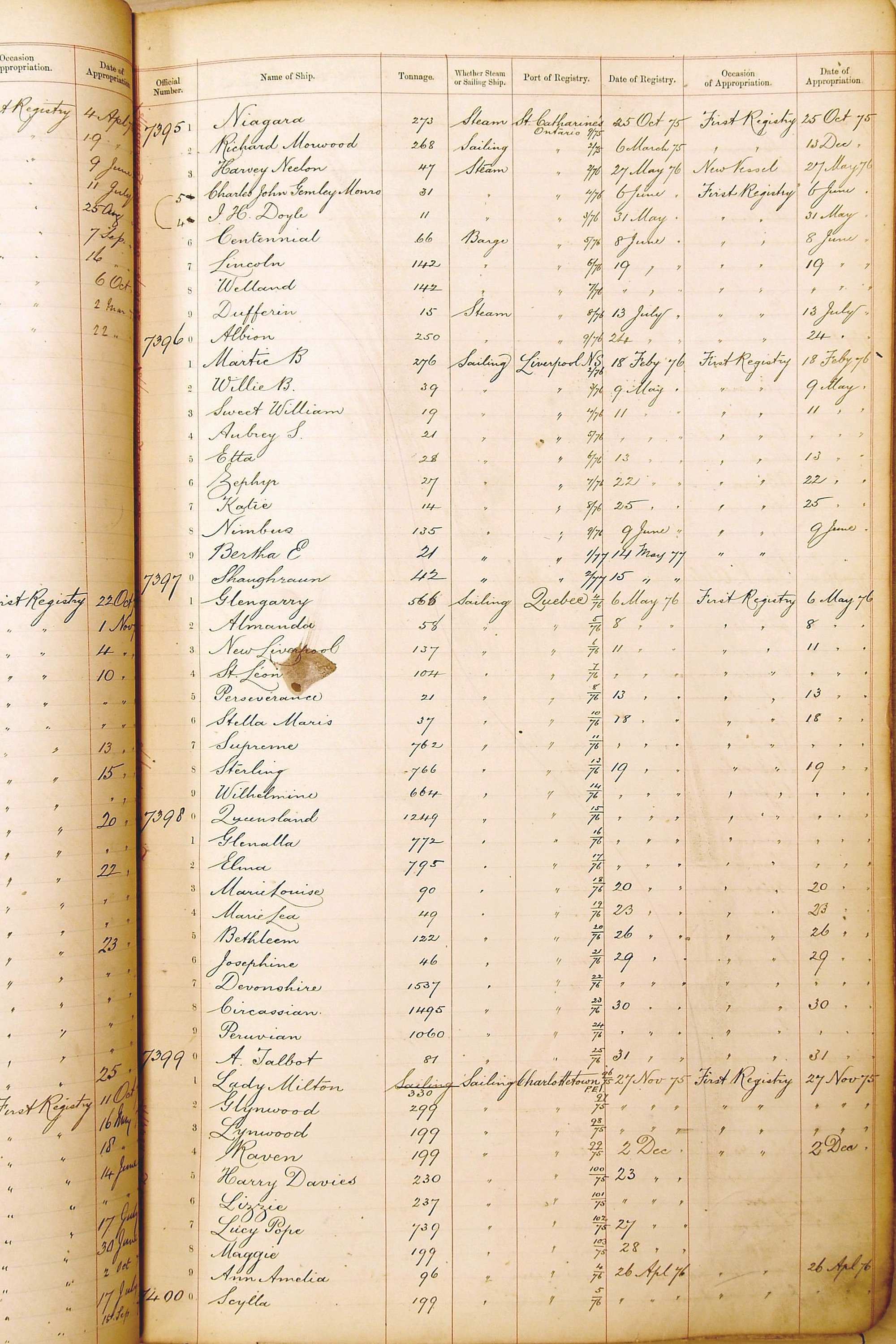 Bear in mind that the ships names in the Appropriation Books are not the definitive name or spelling of the name, even though these are the central records for the whole system. As you can see, the entries are hand-written and derived from hand-written returns made by the various ports, themselves based on the hand-written shipping registers, based on what the port officials thought the person registering the ship was saying or had hand-written down.