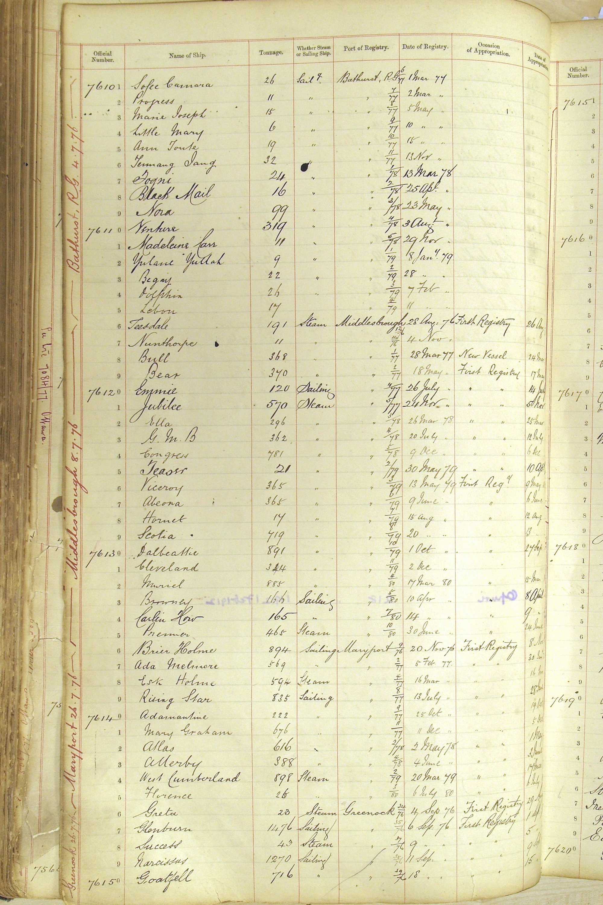 Bear in mind that the ships names in the Appropriation Books are not the definitive name or spelling of the name, even though these are the central records for the whole system. As you can see, the entries are hand-written and derived from hand-written returns made by the various ports, themselves based on the hand-written shipping registers, based on what the port officials thought the person registering the ship was saying or had hand-written down.
