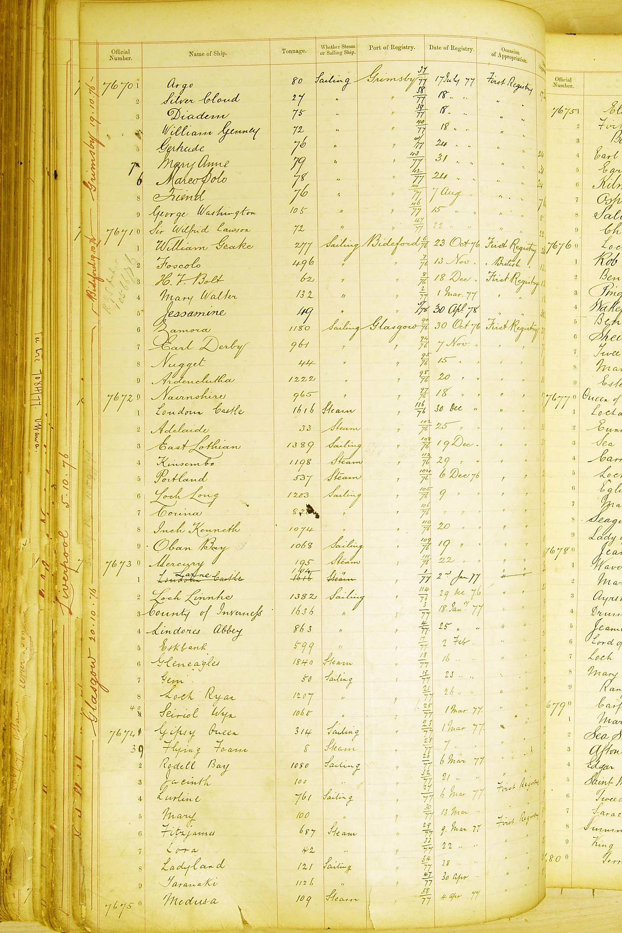 The ship names recorded are those that the ships carried at the time that their official numbers were allocated - changes are sometimes noted, but the best source for changes of name are the shipping registers for the port, or alternatively the Mercantile Navy List.