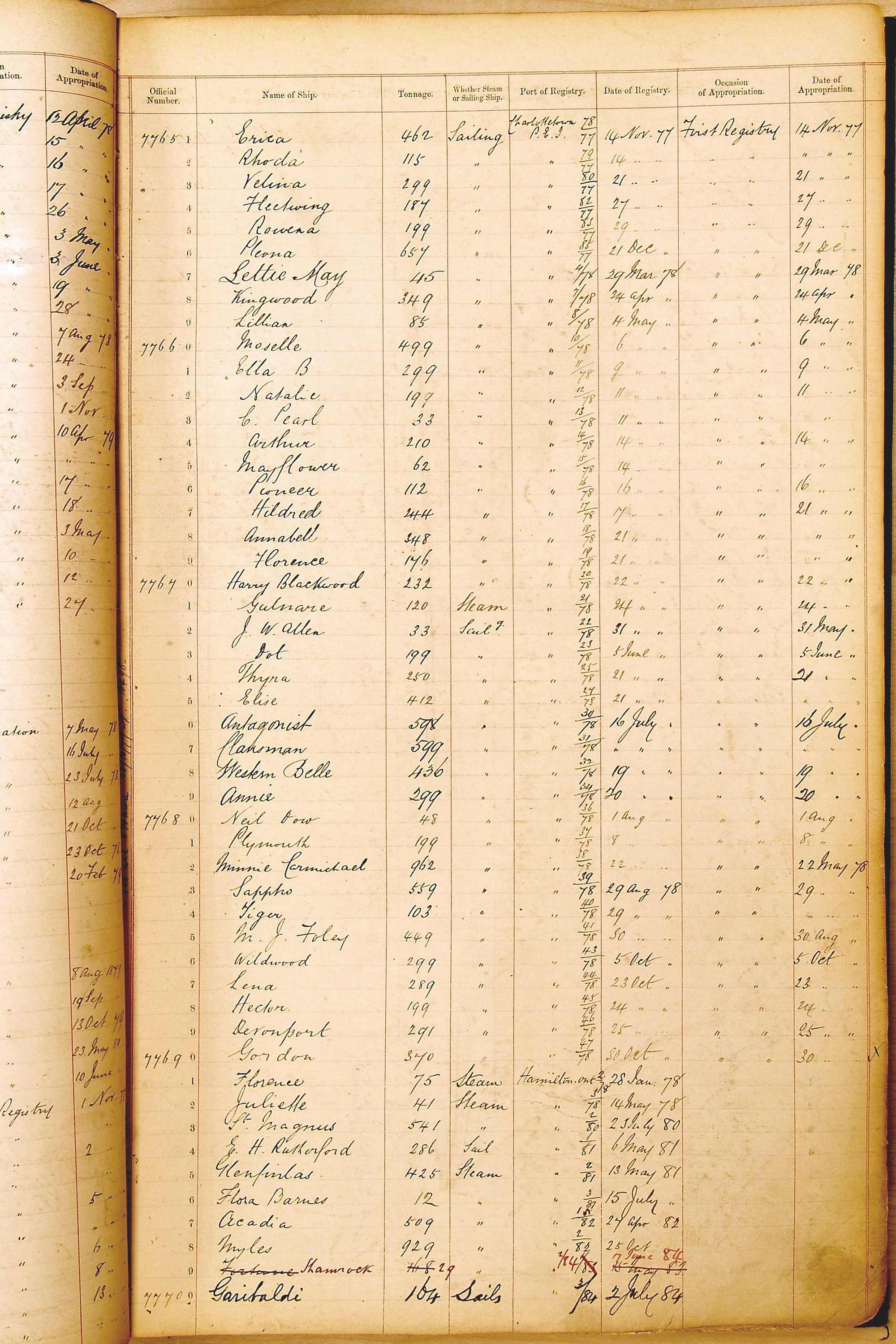 The ship names recorded are those that the ships carried at the time that their official numbers were allocated - changes are sometimes noted, but the best source for changes of name are the shipping registers for the port, or alternatively the Mercantile Navy List.