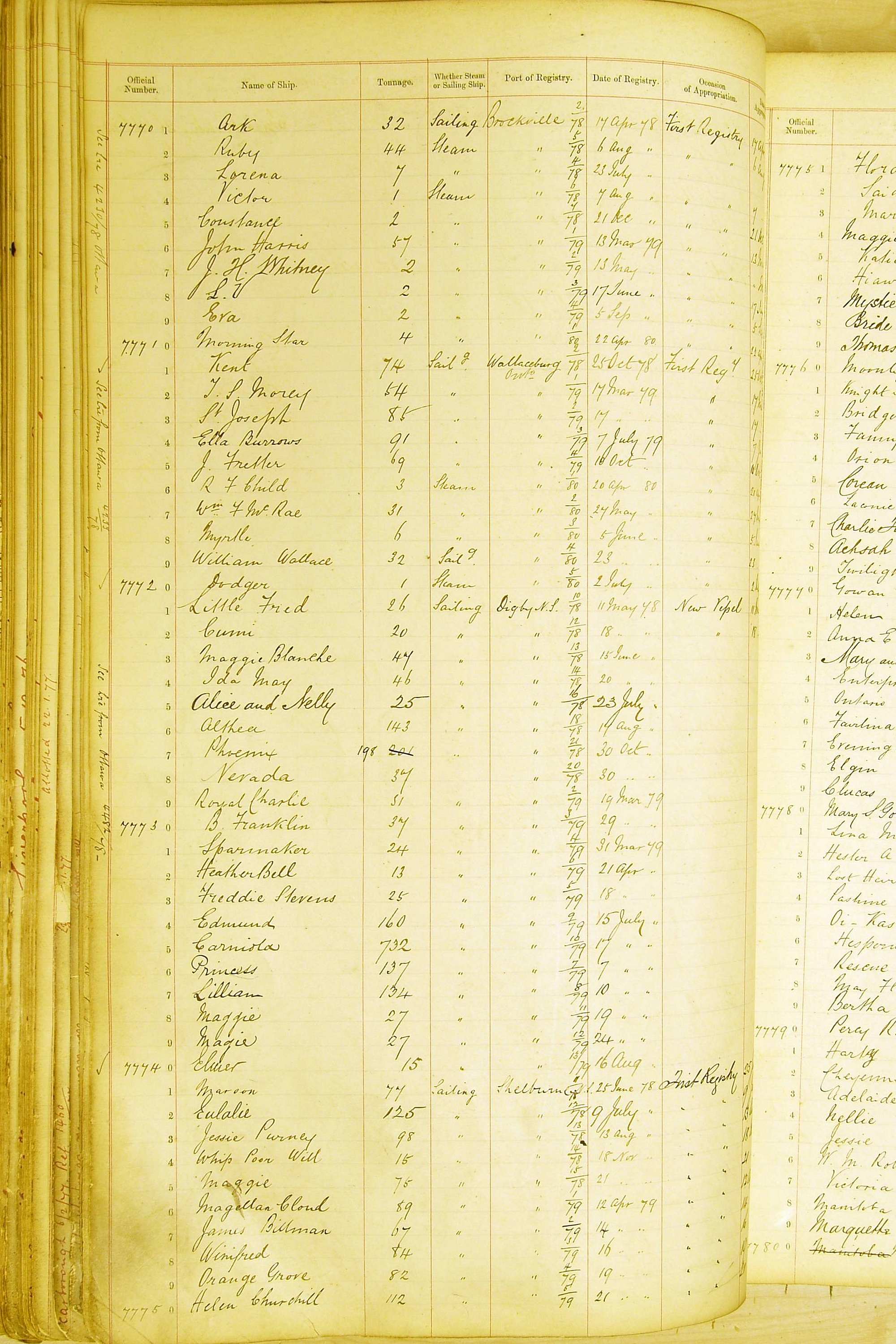 The ship names recorded are those that the ships carried at the time that their official numbers were allocated - changes are sometimes noted, but the best source for changes of name are the shipping registers for the port, or alternatively the Mercantile Navy List.