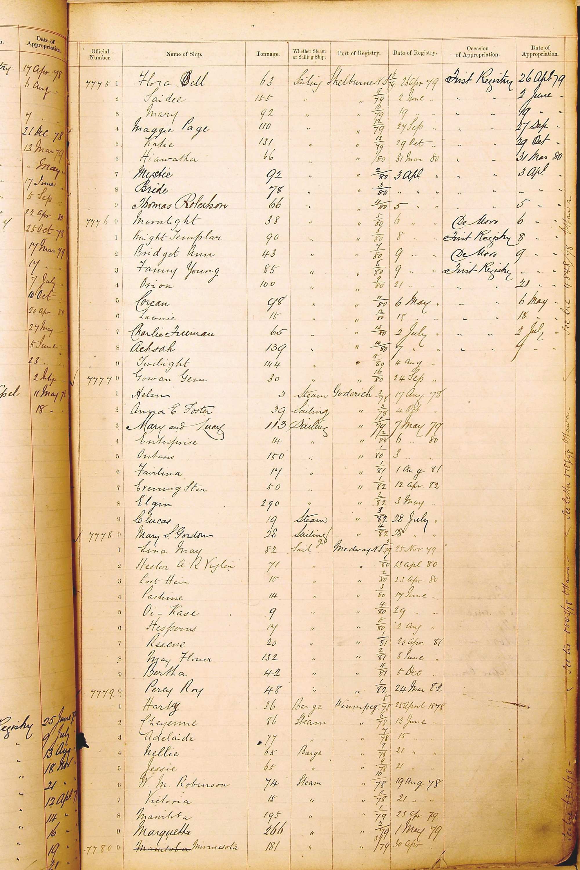 The ship names recorded are those that the ships carried at the time that their official numbers were allocated - changes are sometimes noted, but the best source for changes of name are the shipping registers for the port, or alternatively the Mercantile Navy List.